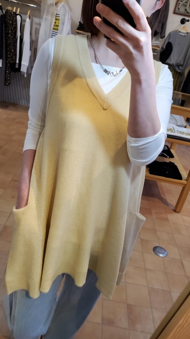 Tシャツなどに可愛くプラスワン!ふんわり畦編みのサマーニットチュニックベストです☆彡 柔らかで軽量な着心地は着ていてとってもノンストレス◎ 裾に向かってひらりとしたサーキュラーシルエットですが、膨らまずにすっきりとした落ち感でヒップ・お腹周りなどを綺麗にカバーしてくれます。 ほのかに光沢のある糸をMIXして編まれていますので全く重く見えないサマーニットです! いつもの夏コーデに加えて可愛く仕上げてくださいね。 ◆¥10,000 → ¥5,000+税 [ライトグレー][ベージュ][ブラック] ポリエステル100% ** ご家庭で手洗いできます ** フリーサイズ 《身幅96㎝ 着丈71㎝ 肩幅33㎝》