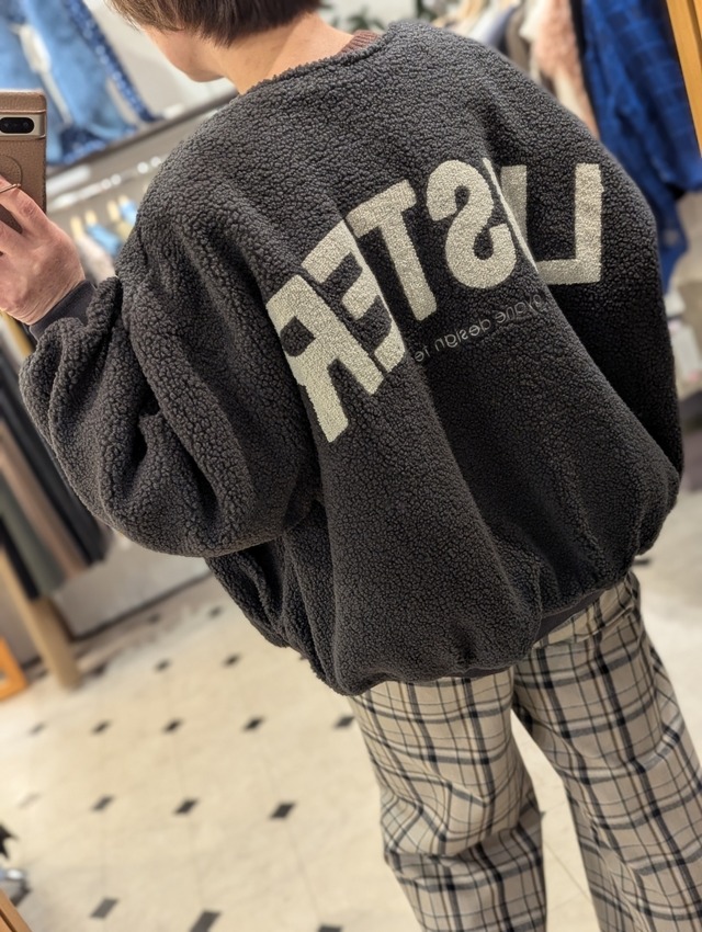インパクトのあるバックロゴ刺繍がポイントの<アヤン>新作ボアブルゾンです★ <アヤン>らしいころんとまあるいシルエットがキュートでしょ♡ 裏はキルティングになっているのでしっかりと暖かく、さらりと重ね着しやすいのも嬉しい素材です。 ボアですが着心地は超軽量◎ダブルジップファスナーでウエスト周りもお好きなシルエットに変えてご着用いただだけます。 ◆¥19800+税 [オフ][モカグレー][チャコール] フリーサイズ (着丈68、バスト154、裄丈83㌢) ボア部分:ポリエステル100% 裏地:ナイロン100% 中綿:ポリエステル100%
