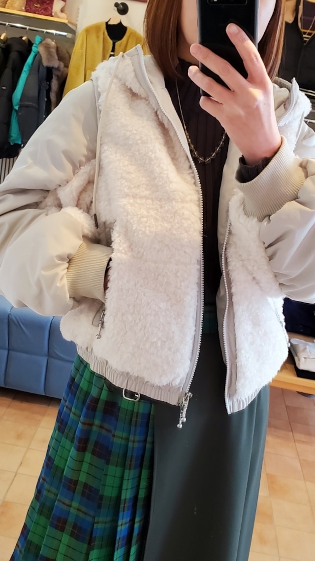 <MARIE D'OR> ボア×タフタ配色キルトフードブルゾン