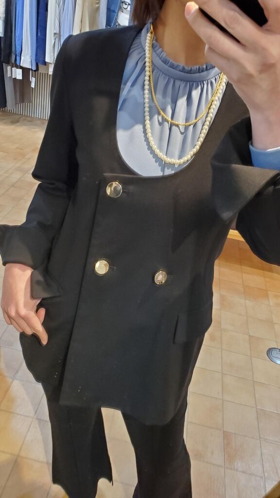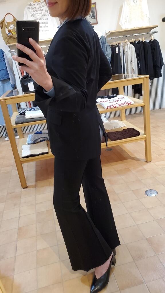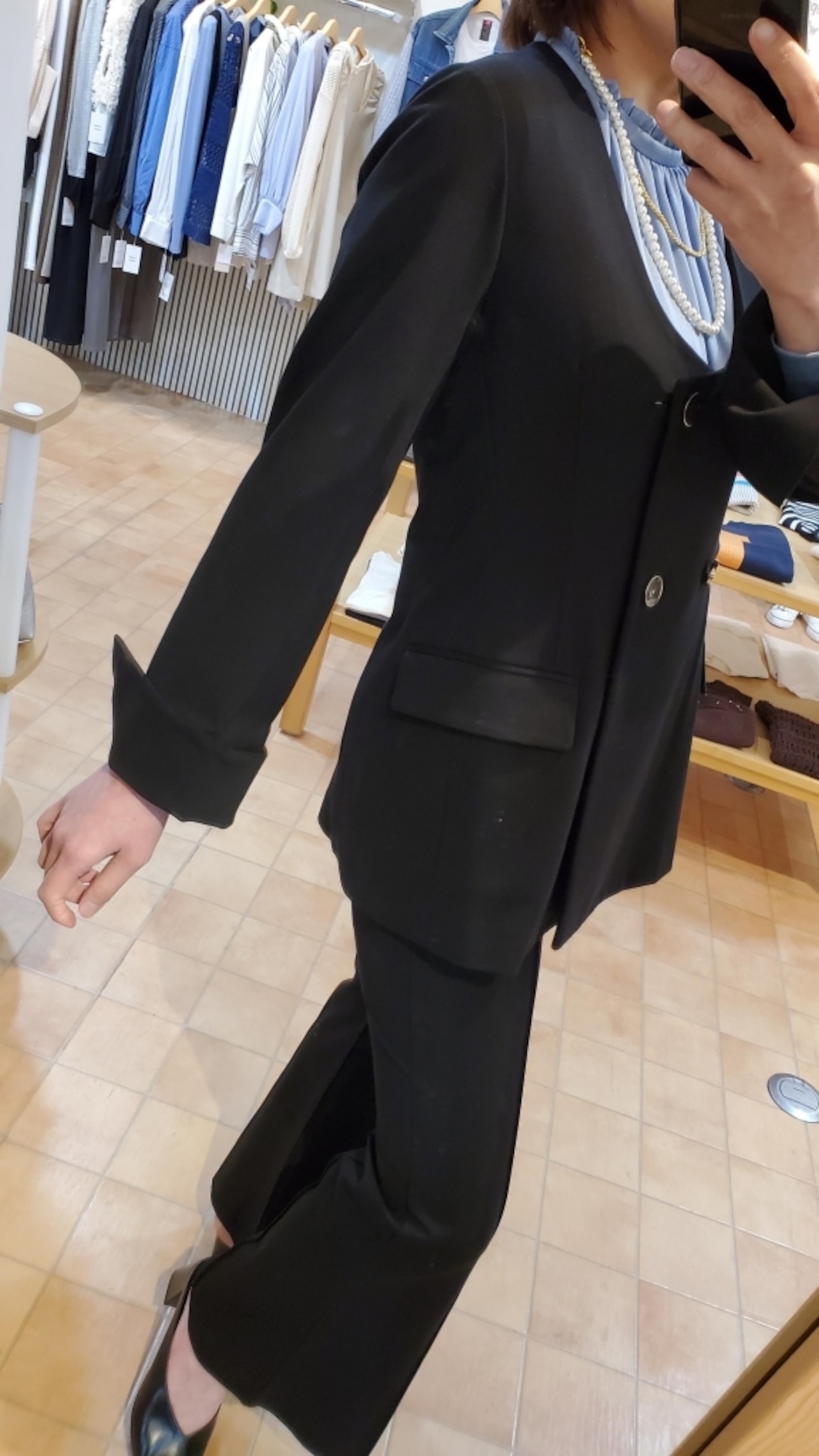 同素材の美脚フレアパンツと合わせた、スタイリッシュなセットアップスタイルも大変おススメです!