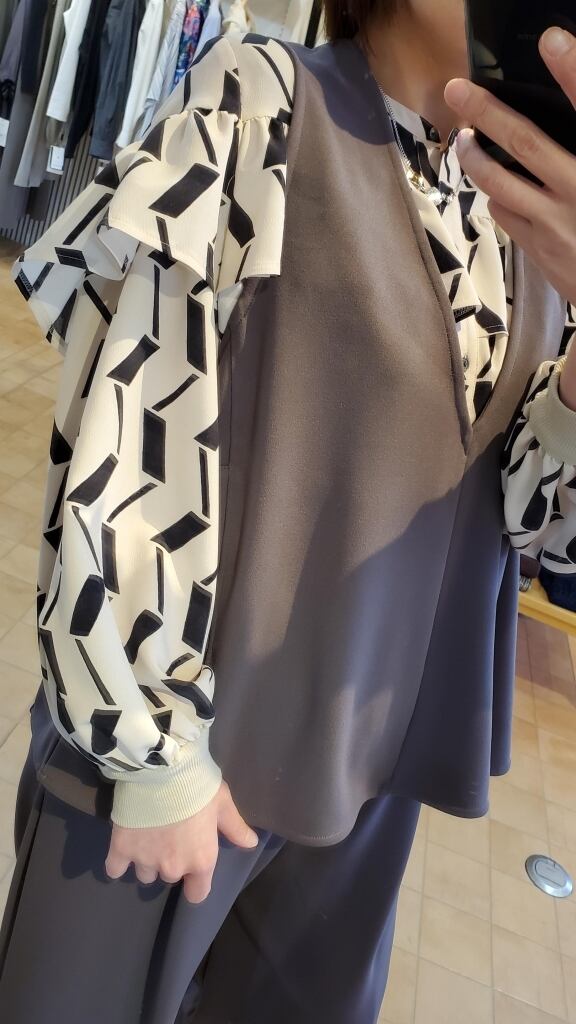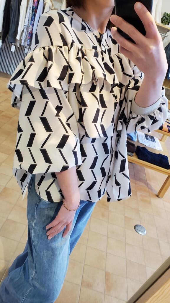 再入荷★<トロア> ジオメトリックプリントフリルブラウス