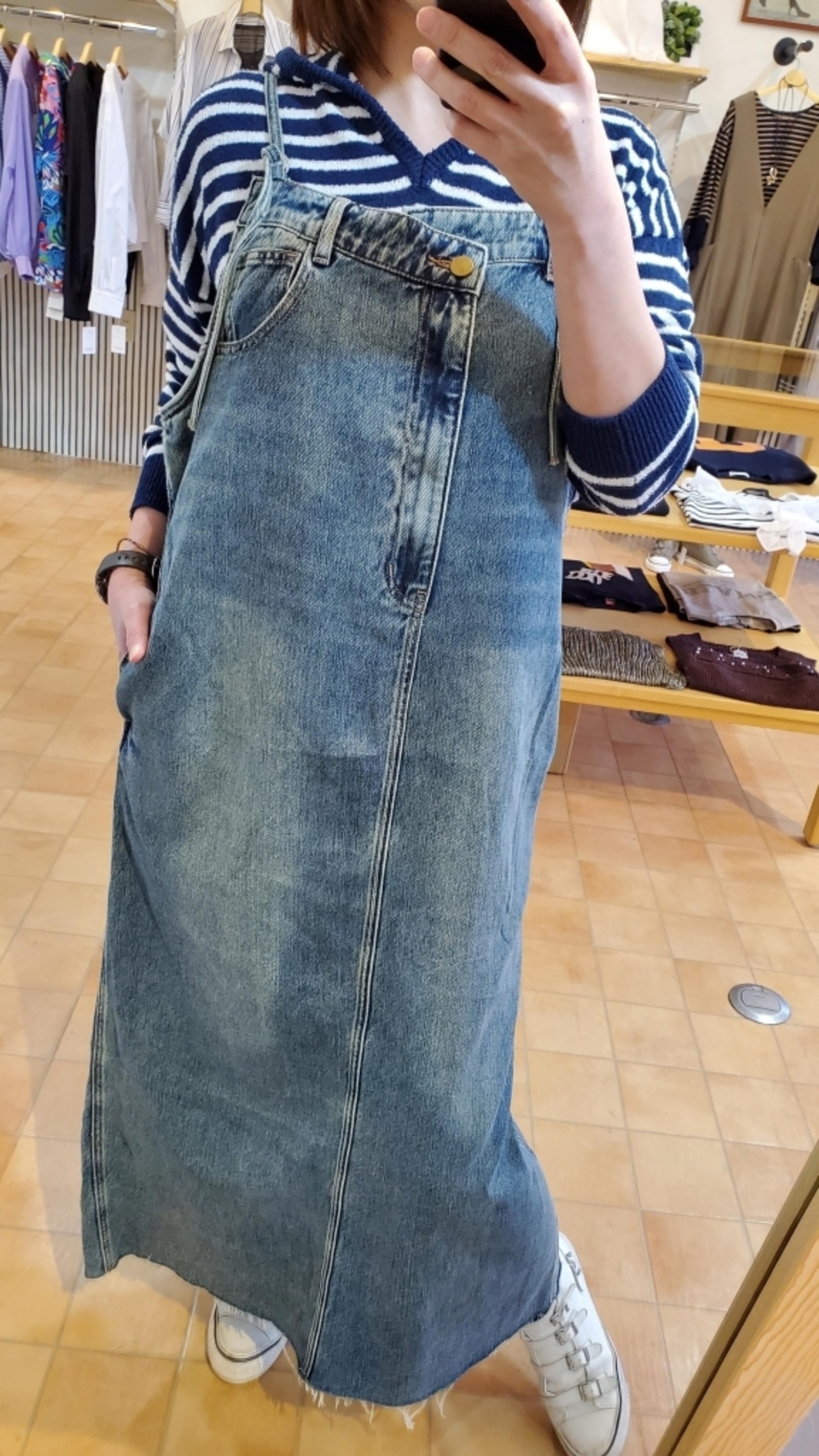 デニム素材ですので合わせ勝手も良く、様々なコーディネートを新鮮にしてくれるボトムとして是非おすすめです♪