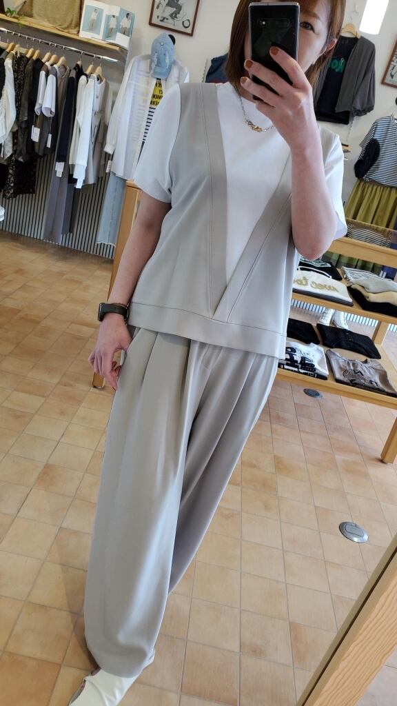 同素材をベスト風にドッキングしたプルオーバーと合わせて、とってもお洒落なセットアップスタイルもおススメです!