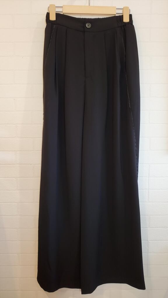 斜めスパイラルにサイドラインを入れたセミワイドパンツです。
