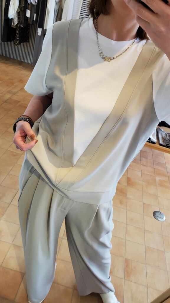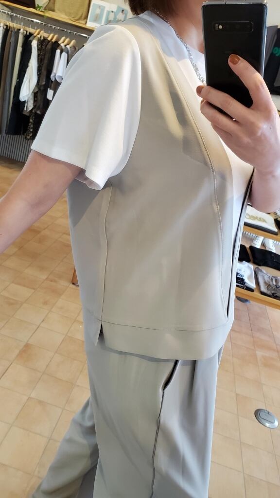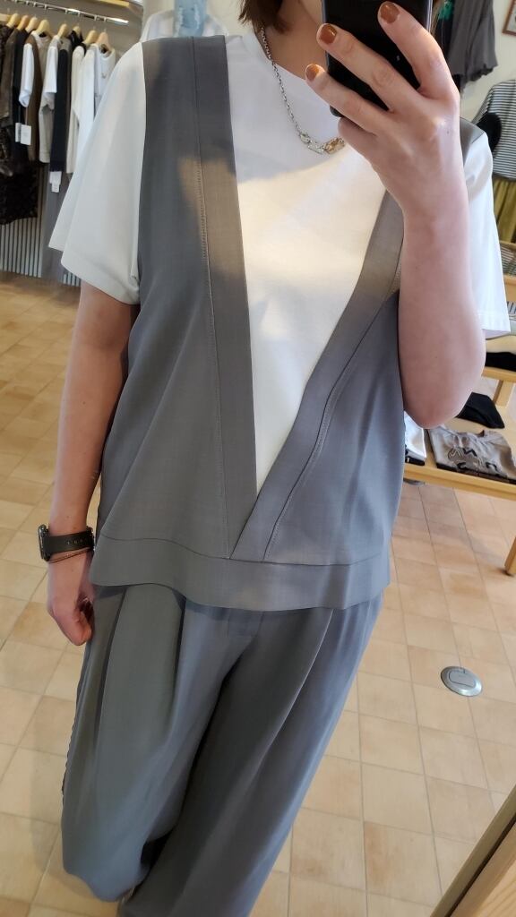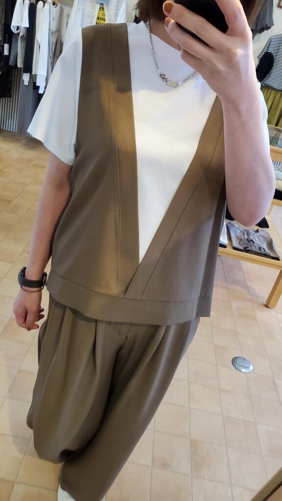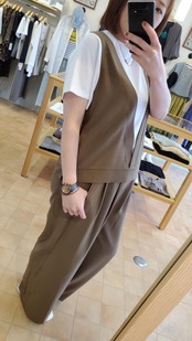 ベスト部分と同素材のパンツと合わせて、素敵なセットアップスタイルも是非いかがでしょうか☆