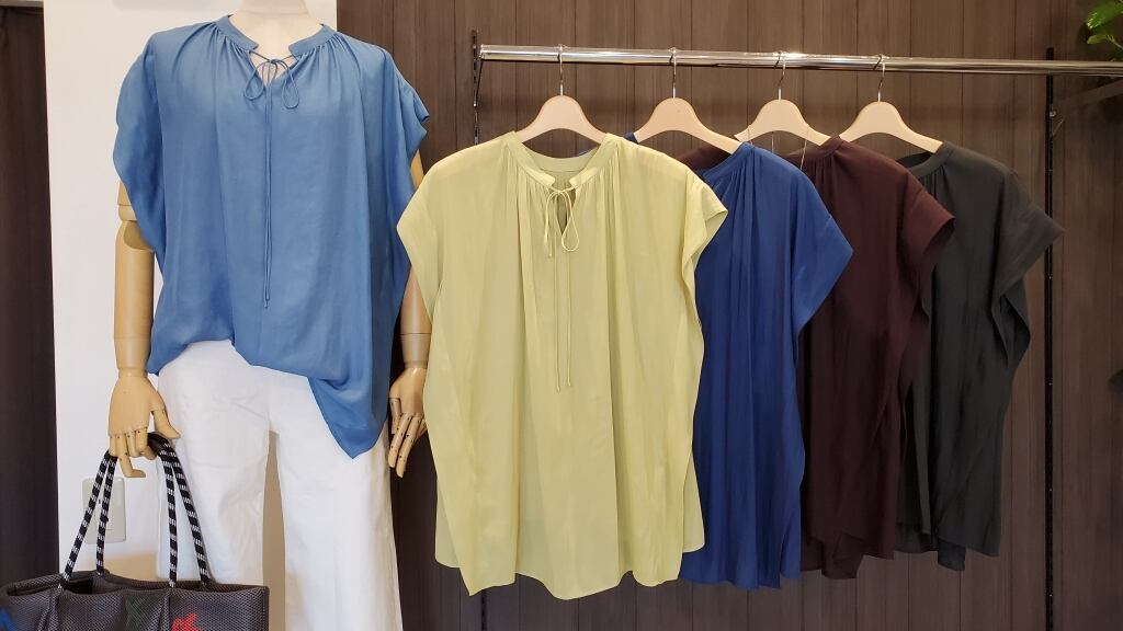 ゆったりと体型を出さないシルエットですので、暑い日の上品な一枚着ブラウスとしても重宝です。