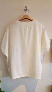 つるんと滑らか、きめ細かなしっかりとした質感のレーヨンメインの素材。白のお色でも透けませんし、ゆったりドルマンシルエットですから一枚で安心して着ていただけます。