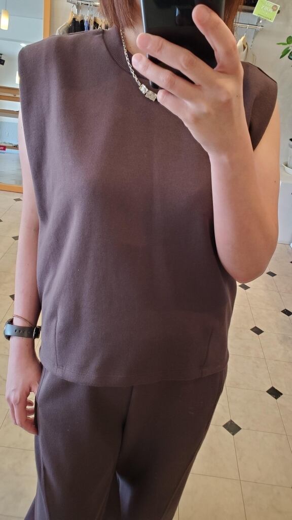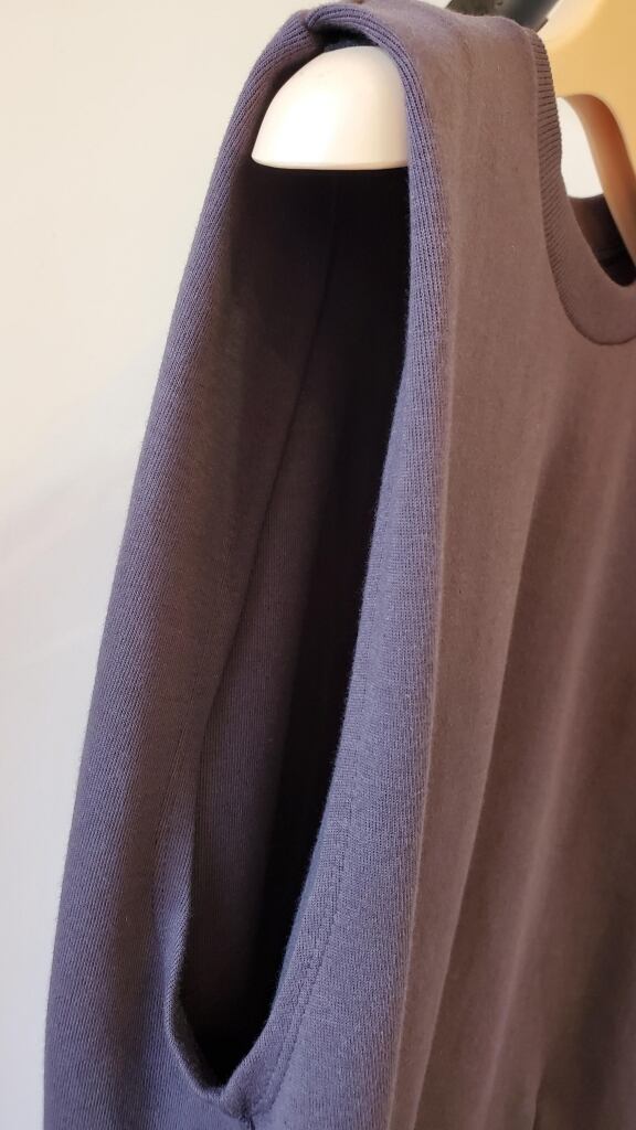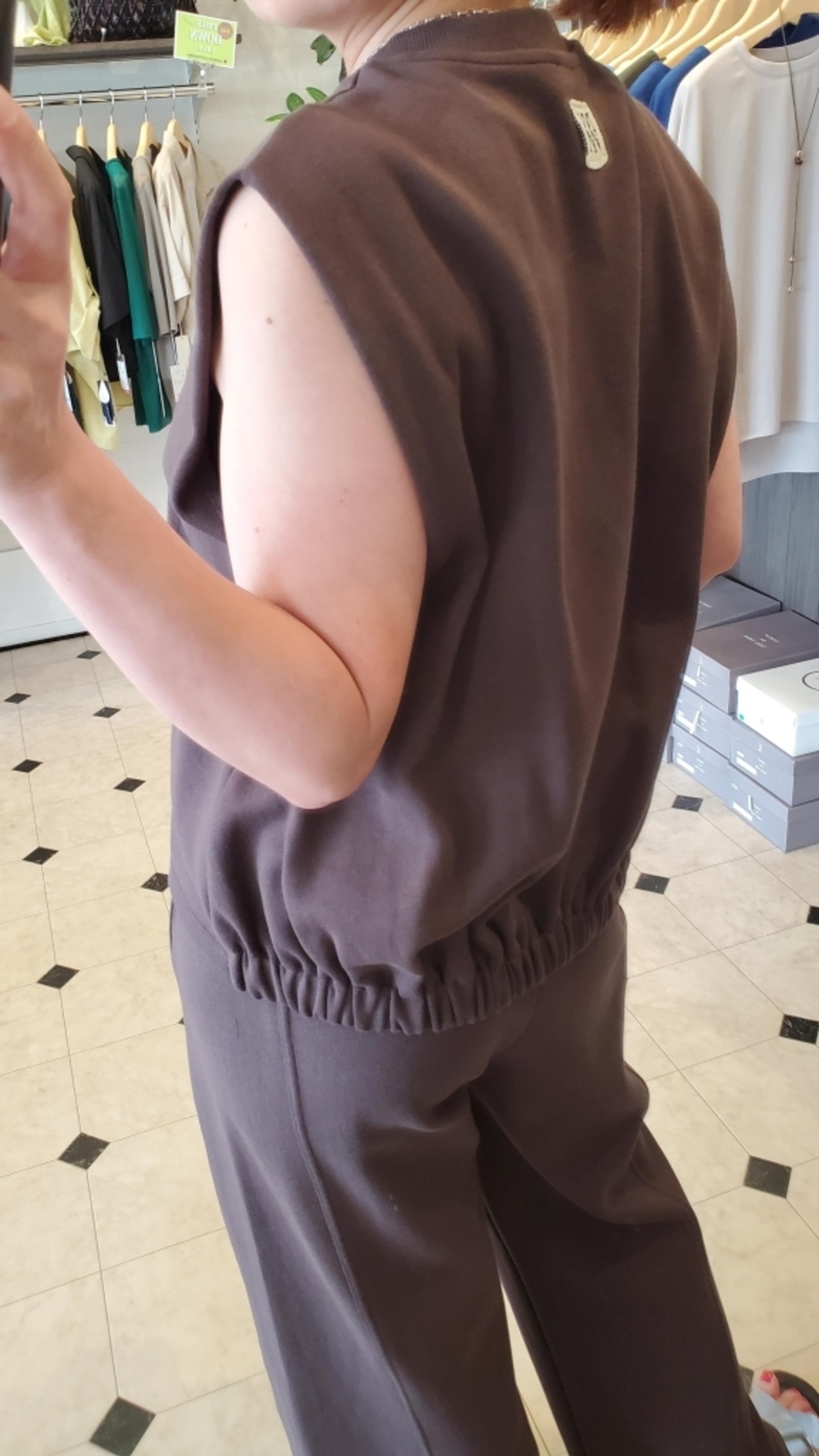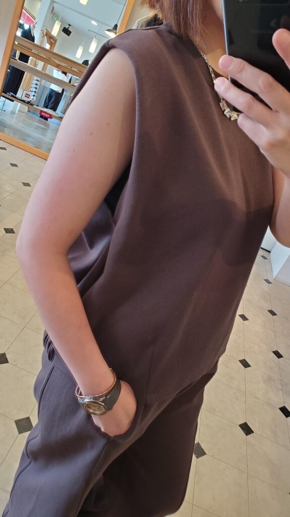 内側に折り込まれたスリーブで、ノースリーブでも気軽に着られるお袖に。ベストとしてのの使いもできますよ◎