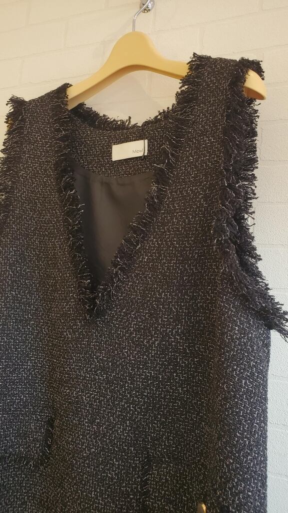 <Mewl> ツイードフリンジ深Vミニワンピース