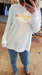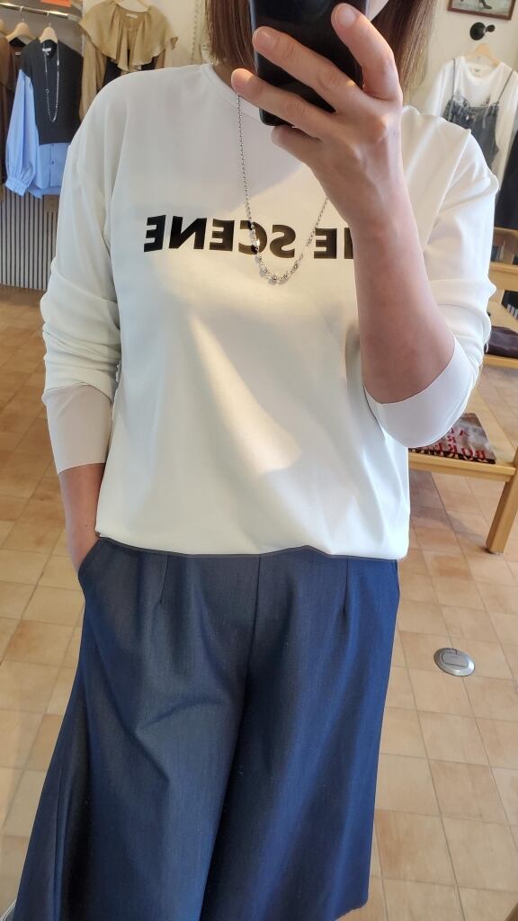 お袖には滑らかなチュール生地をレイヤードし、ロゴアイテムでもカジュアル過ぎずに楽しめるTシャツになっています。