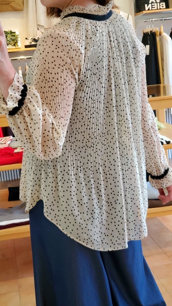 <BLUE FRONCE> ドット柄プリーツシフォンブラウス