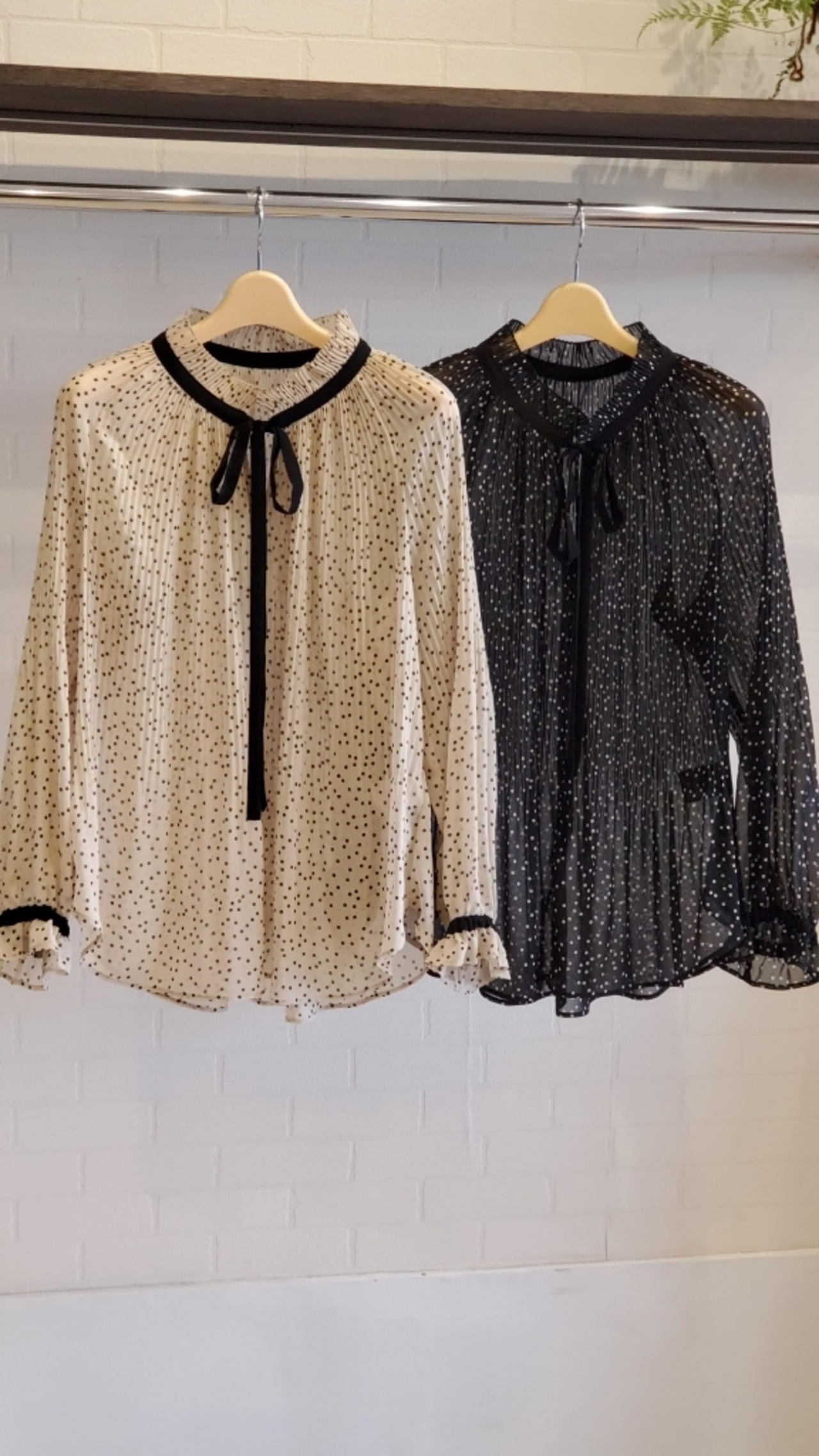 ドット柄とリボンタイで華やぐ主役ブラウスです☆