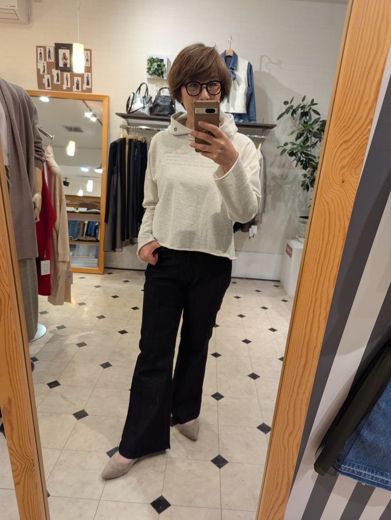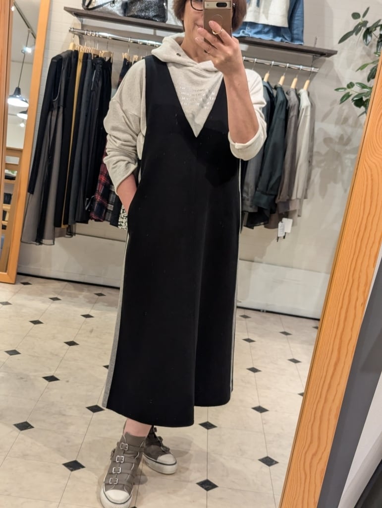 同素材のロングスカートと合わせたセットアップスタイルも新鮮です^^
