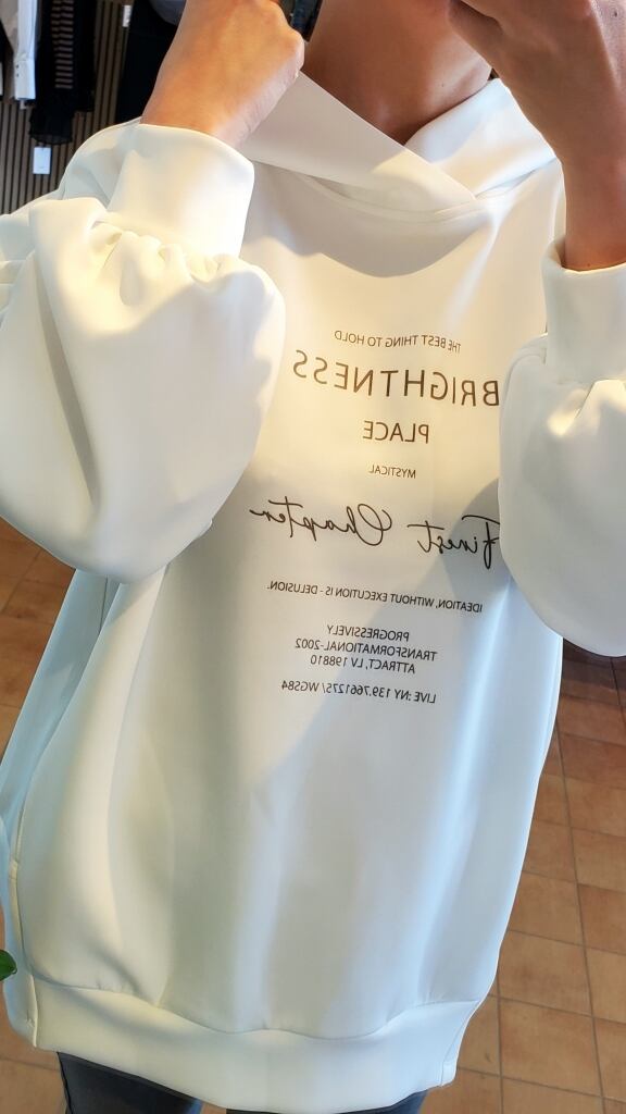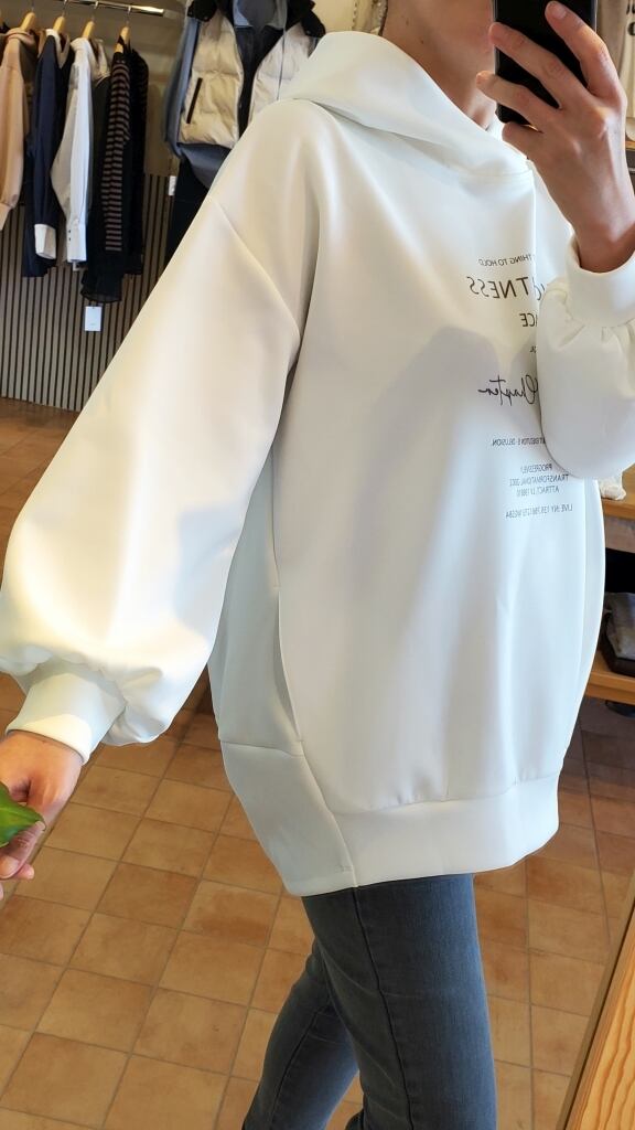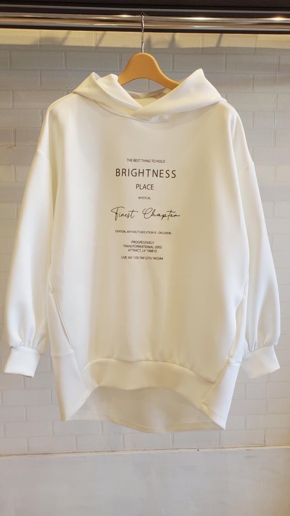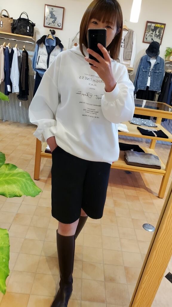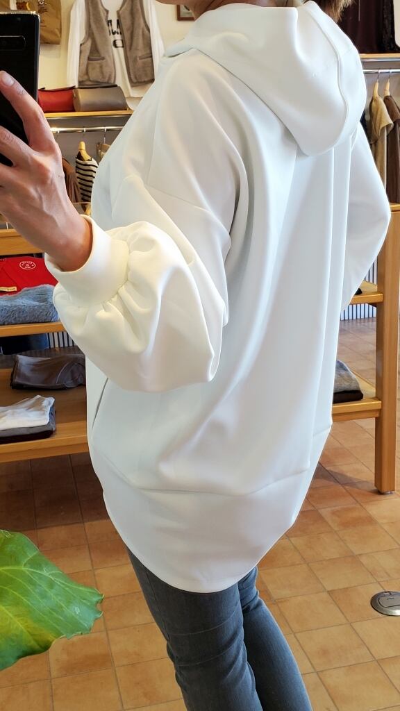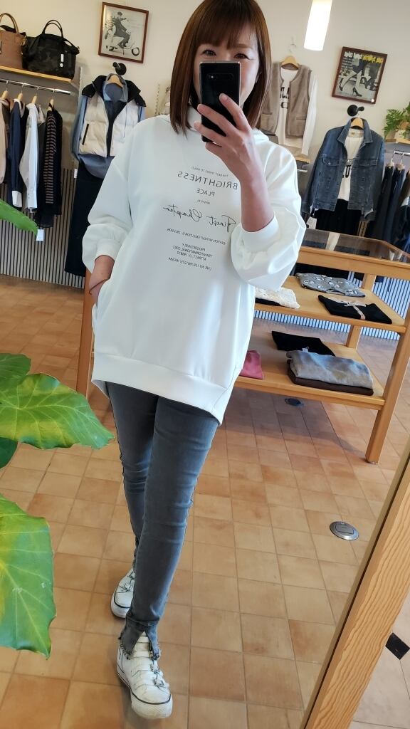 つるんとした素材感で綺麗めに楽しめる<アヤン>ロゴパーカーです。