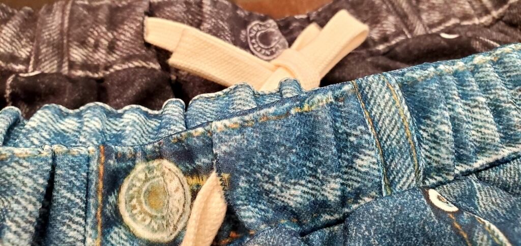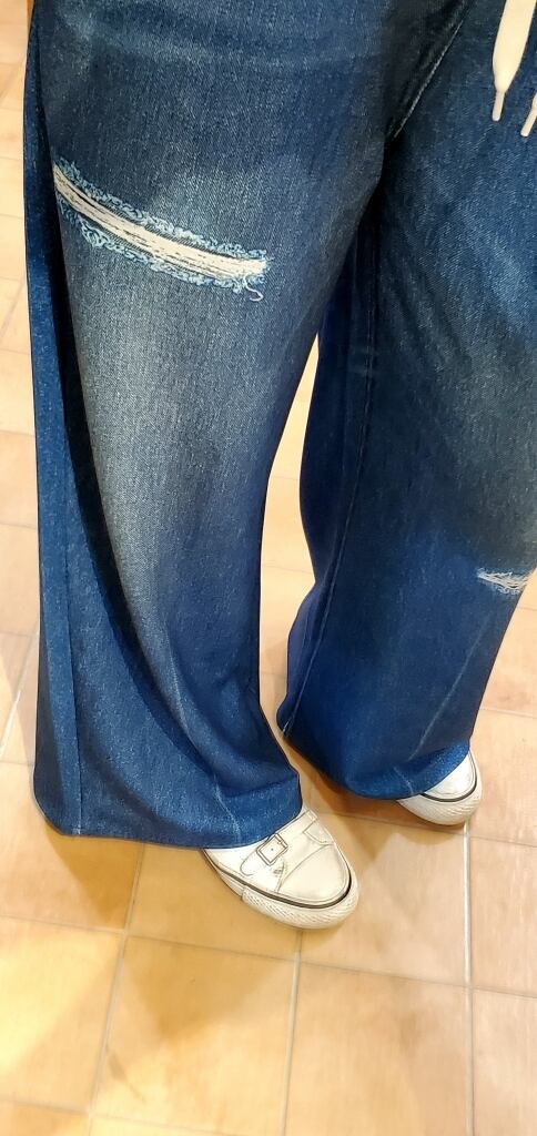 と~ってもイージー☆彡デニムプリントを転写したハイテンション素材のワイドパンツが登場です!