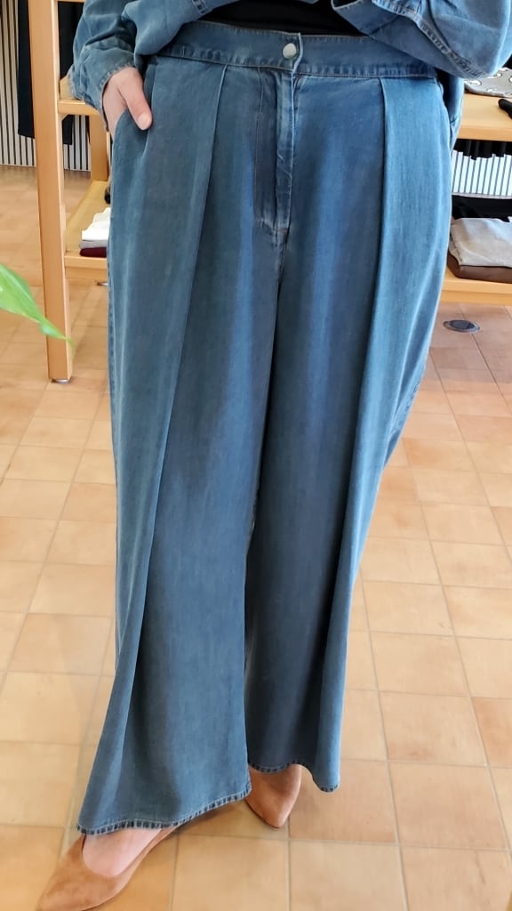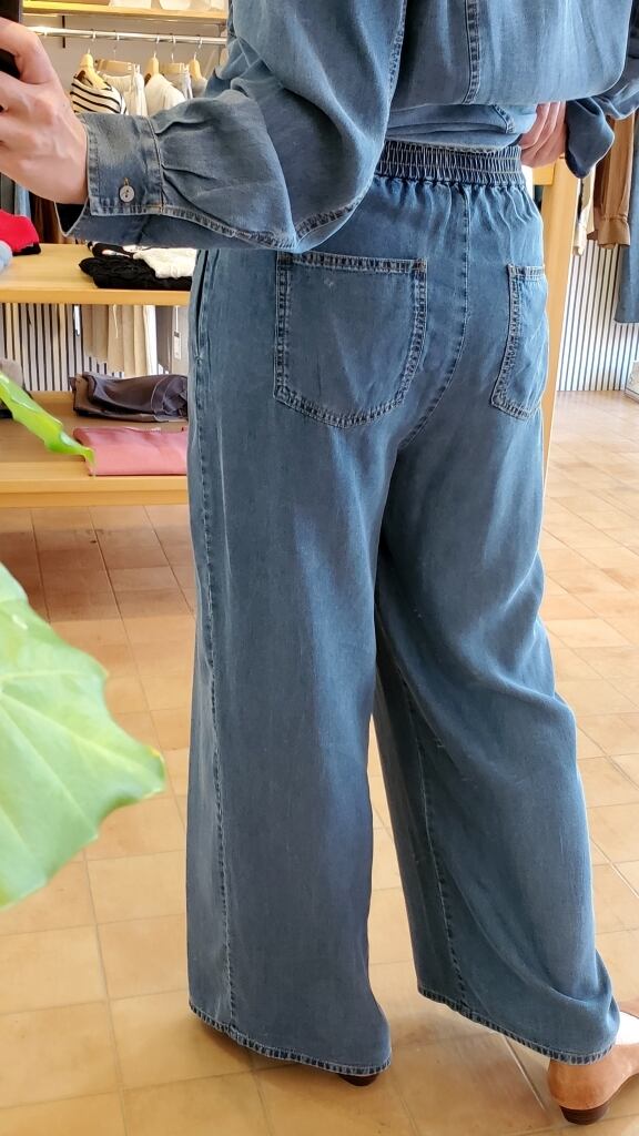 落ち感の良い、テンセル100%デニム素材のワイドタックパンツです。