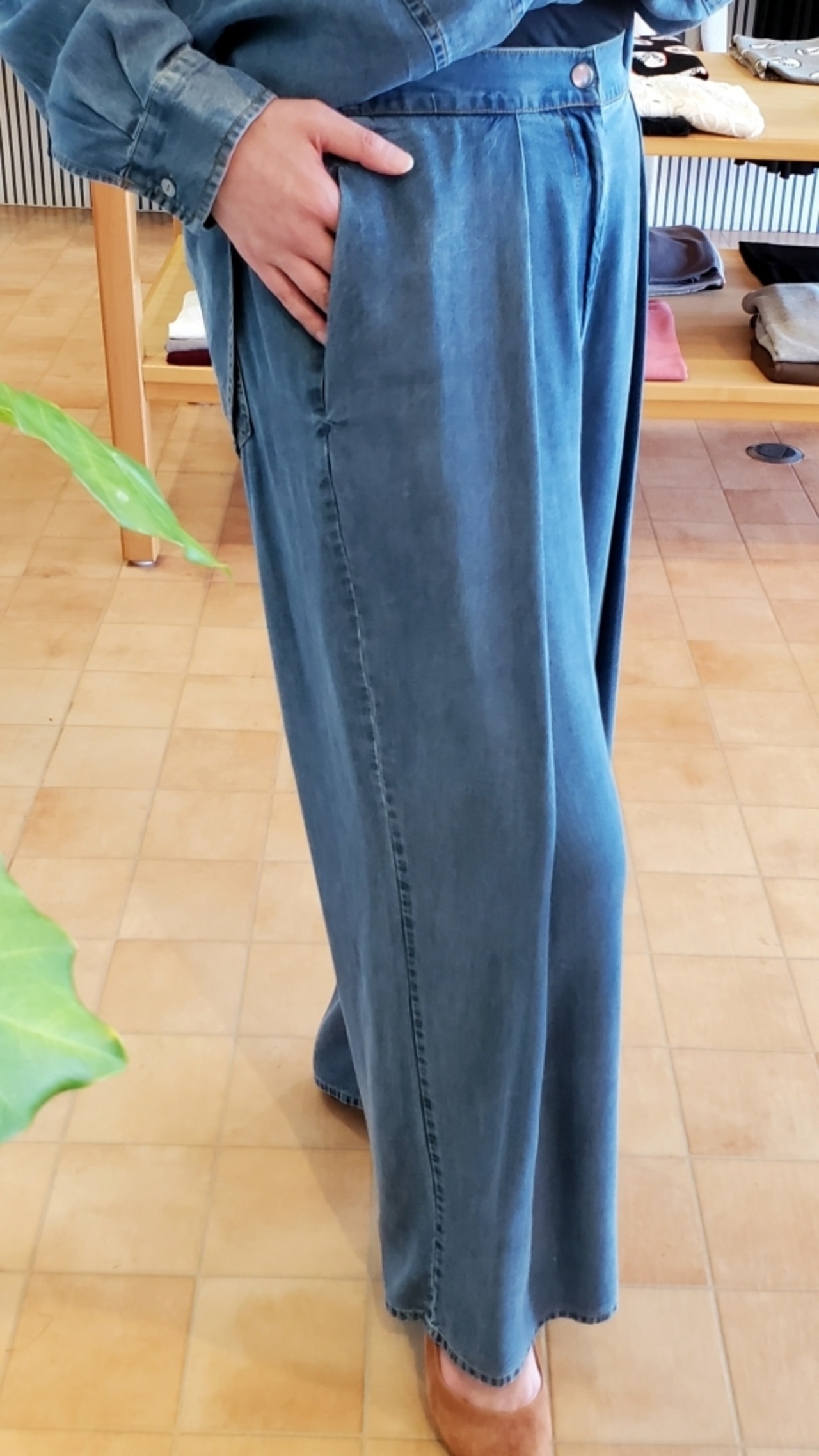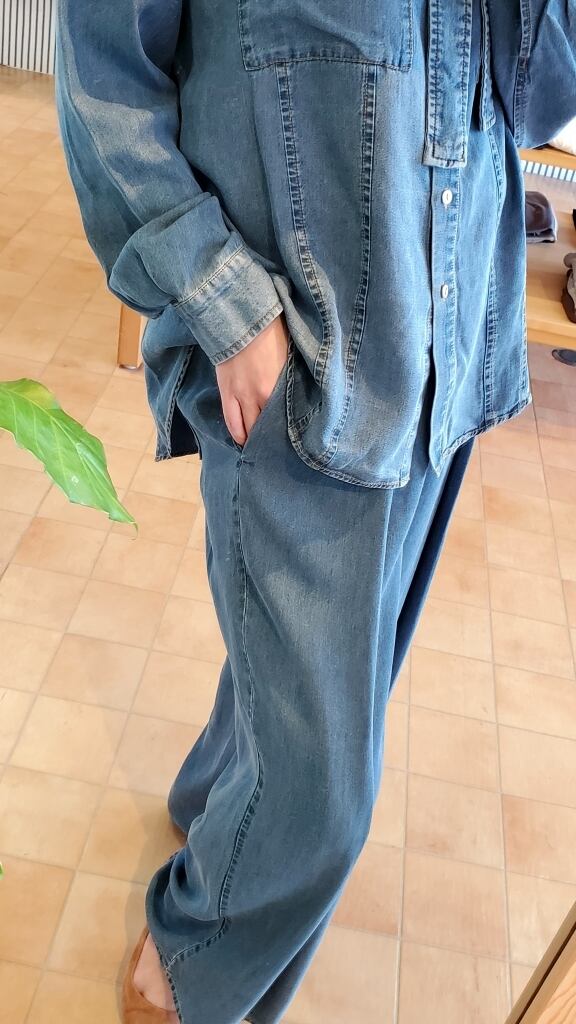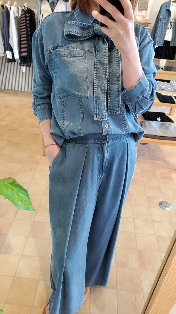 同素材2WAYリボンタイテンセルデニムシャツと合わせたセットアップスタイルもおすすめです★