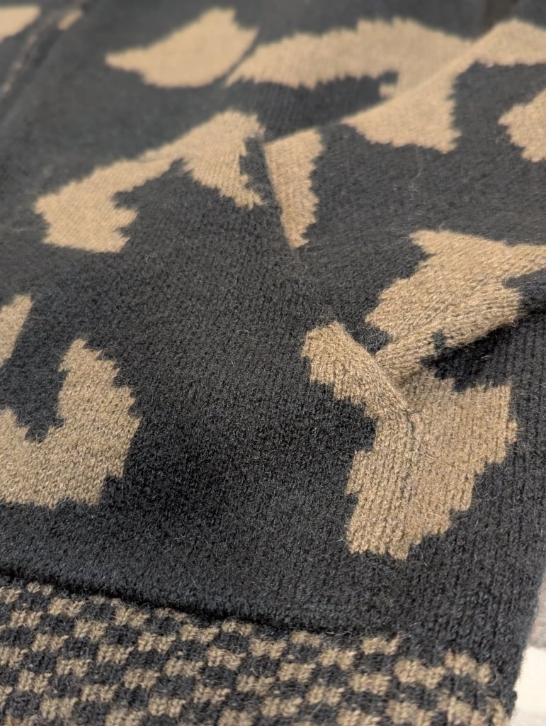 チェック柄★レオパード柄★大胆な大きめ柄がコーディネートの主役になってくれるショート丈ニットブルゾンです。