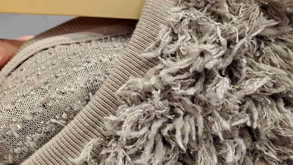 ニットソーのような素材にふわふわ軽量ボアとラメをあしらっていますので、着心地はとっても軽く柔らかです。
