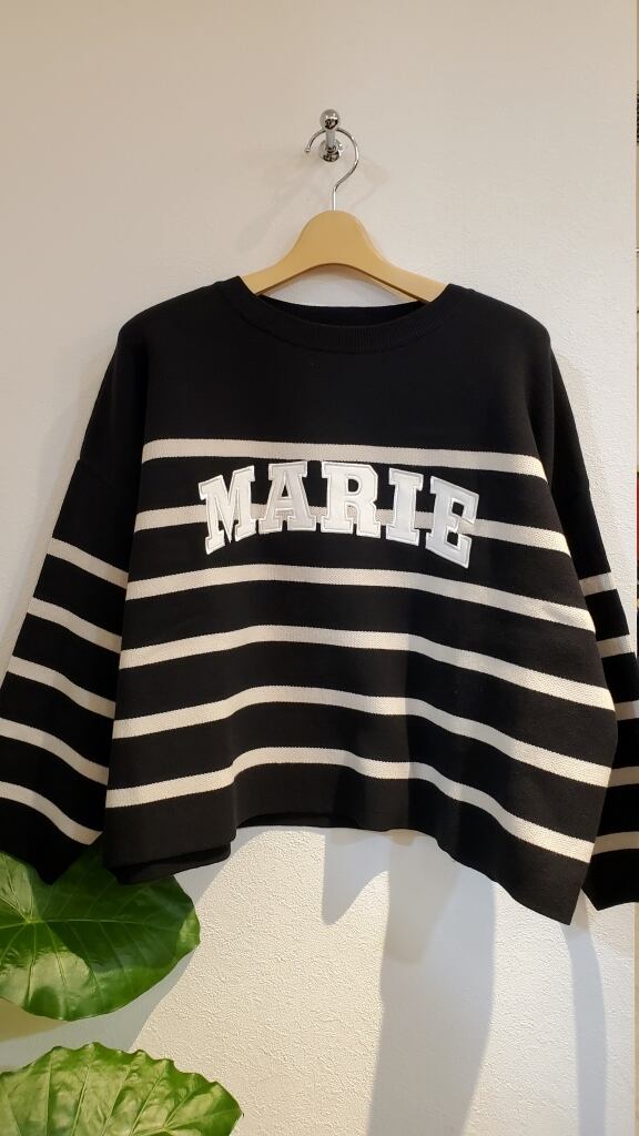<MARIED’OR> ワッペンロゴ ボーダー柄ジャガードニットプルオーバー