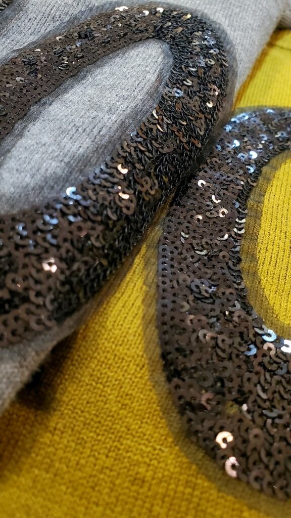 スパンコールロゴの縁にはオーガンジー生地も付いて、ロゴアイテムですが大人の遊び心が満載です。