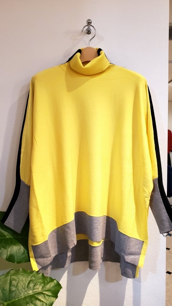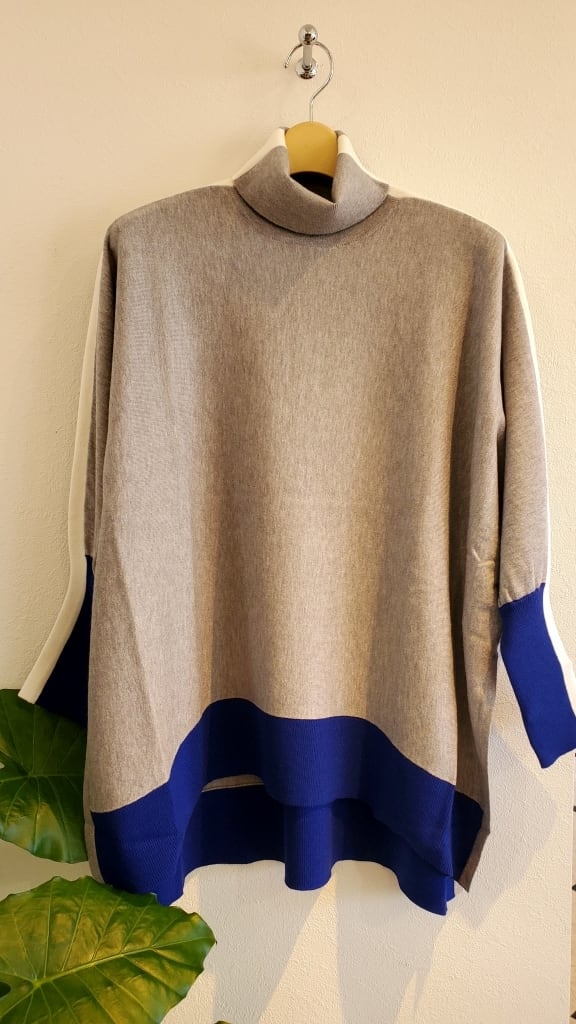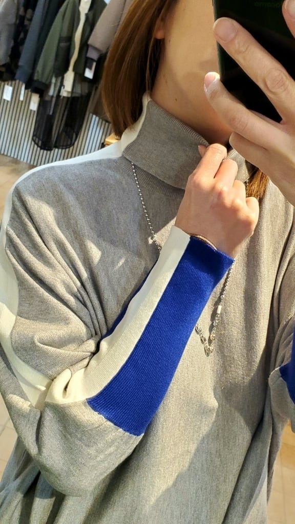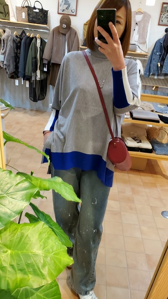 明るいカラー配色が一枚で見映えを完成させてくれるハイネックチュニック丈ニットです★