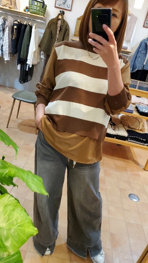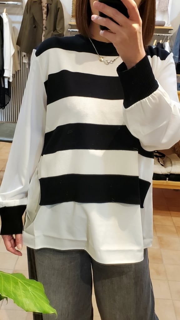 <MICALLE MICALLE> ボーダーニット×ブラウスドッキングプルオーバー