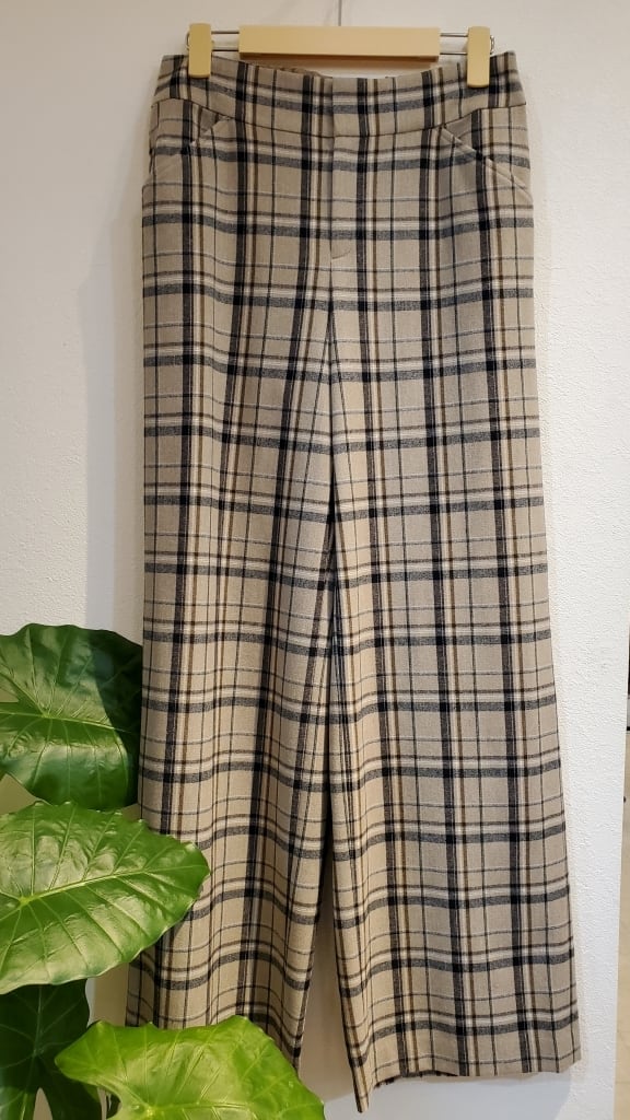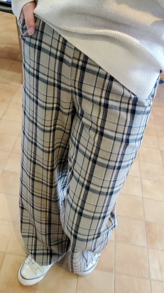 今回は秋冬の表地微起毛温もりのチェック柄セミワイドパンツ~☆彡しっとりとストレッチ感もあるすらりと美脚が叶うセミワイドシルエットパンツです☆