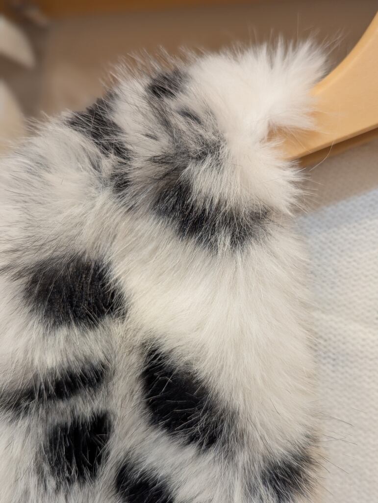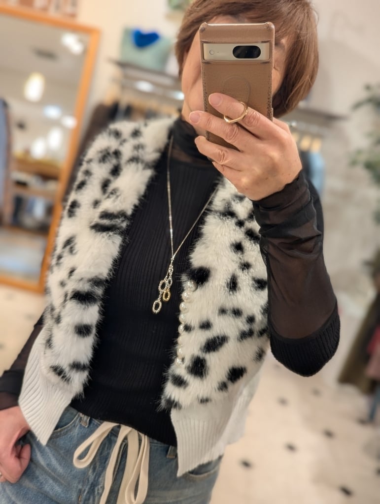 毛足のあるファーがダリメシアン柄も柔らかな印象になり、ほのかな大人可愛さのスタリングに♪