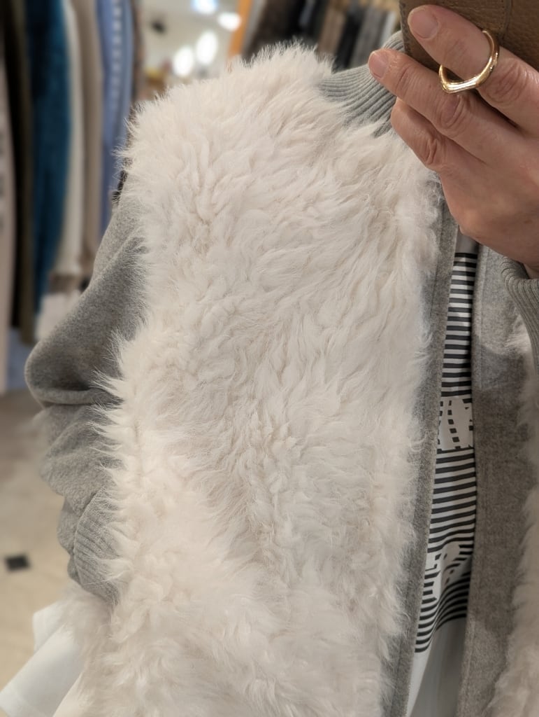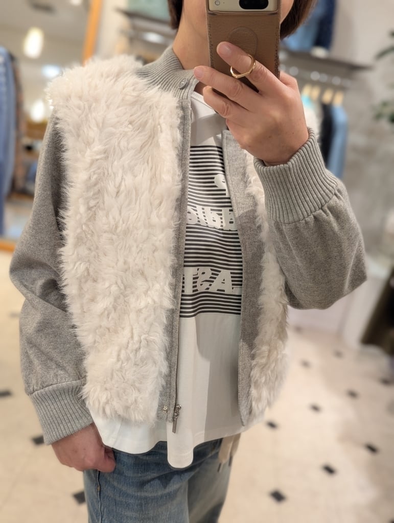 ウールメルトンのようなポンチ素材と愛くるしいファーベストがドッキングした見映えショート丈ブルゾンです★