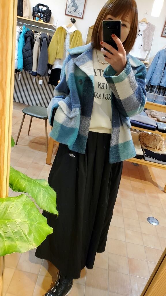 イタリア製の生地を使用した、大胆な大き目チェック柄が目を惹くショート丈コートです。