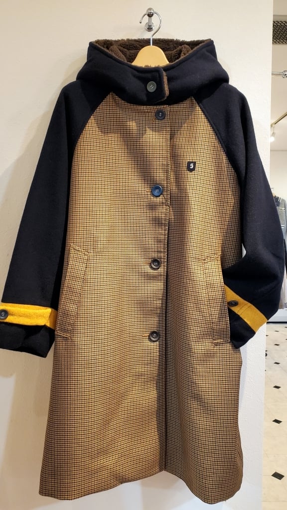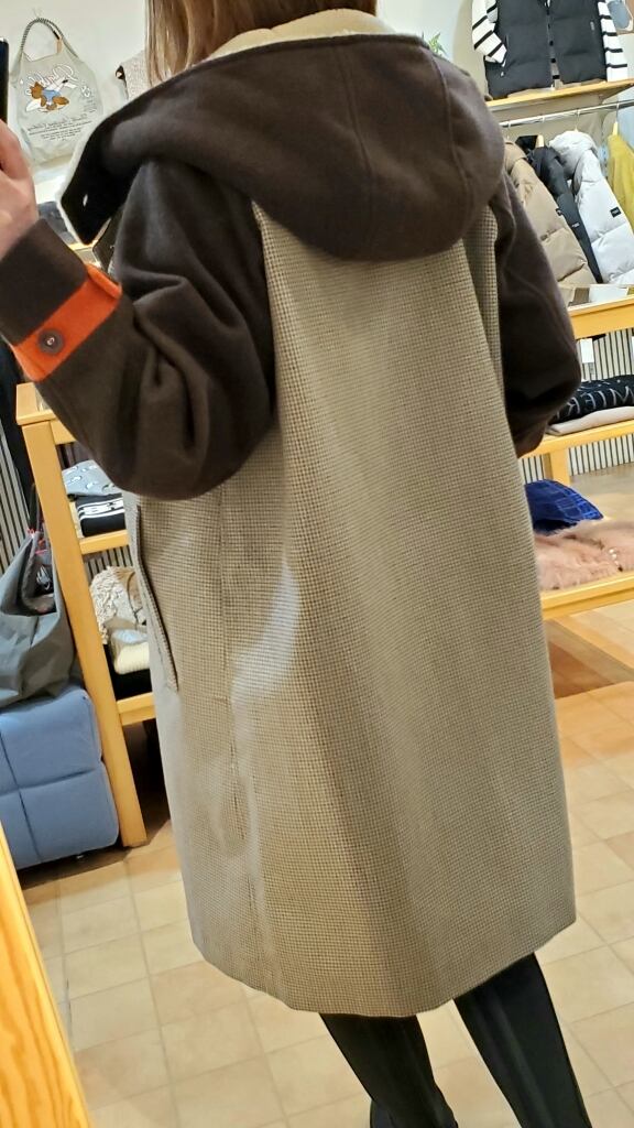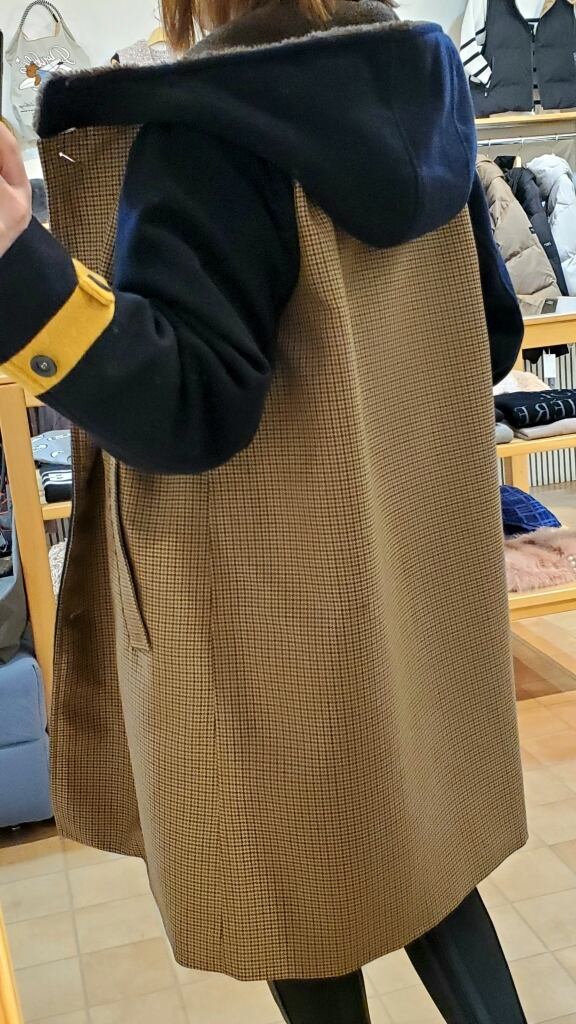 <BLANC basque> チェック×ソフトメルトン×くるみ釦フード付きコート
