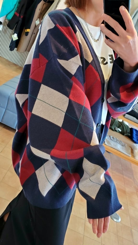 <アヤン>の最新作アーガイル柄カーディガン!羽織るだけでコーディネートの主役になるカーディガンが入荷しました。