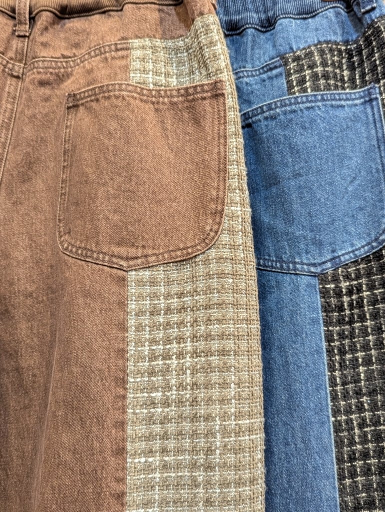 見映えのツイード素材を切り替えたオシャレなデザインデニム☆