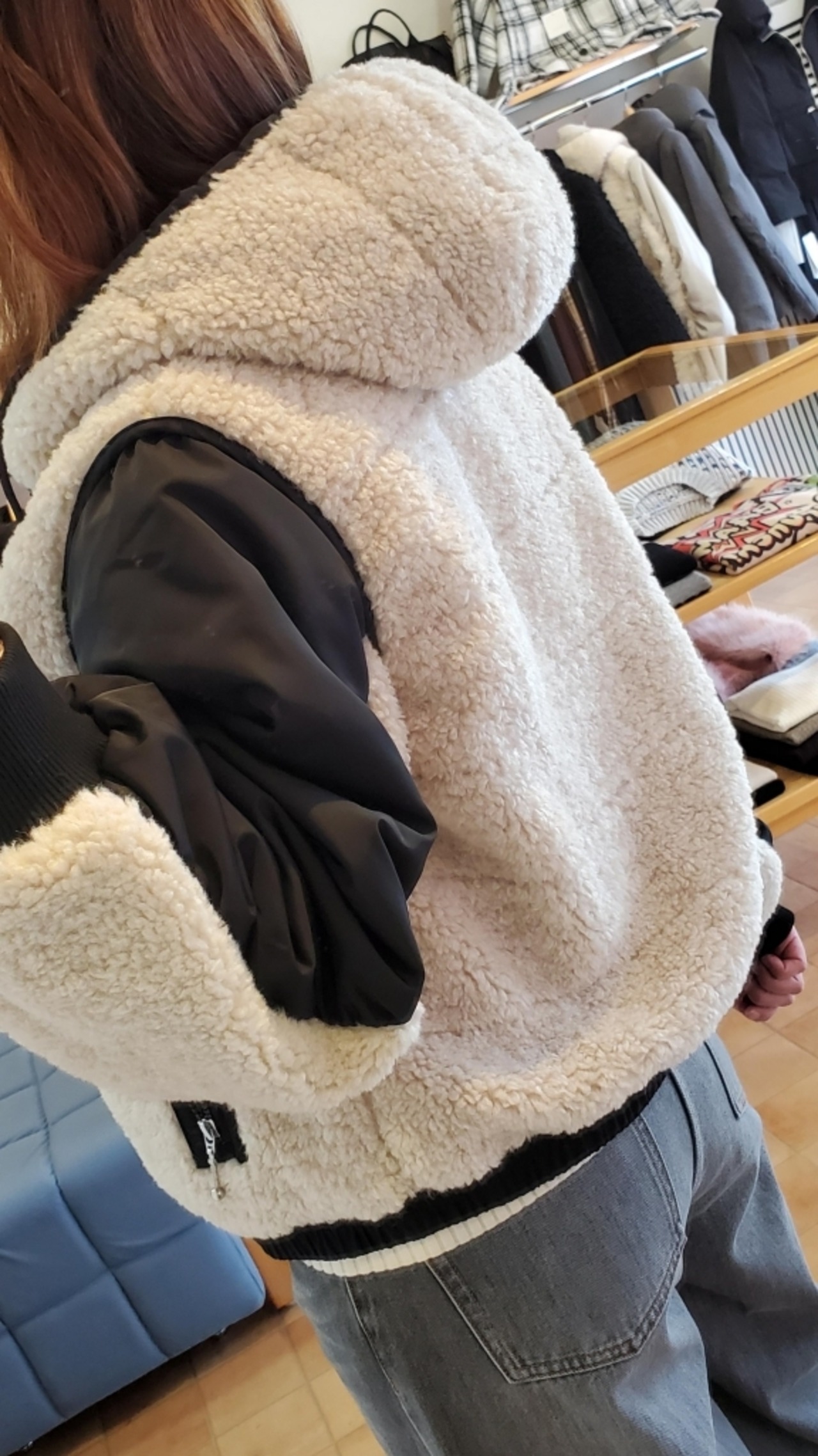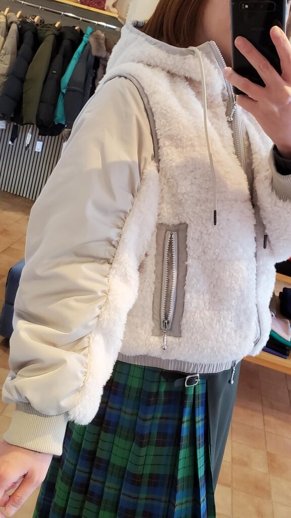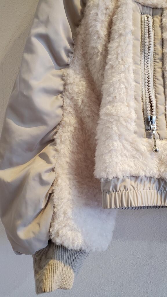 ボアベストを重ねているような、とっても可愛いショート丈タフタブルゾンです。
