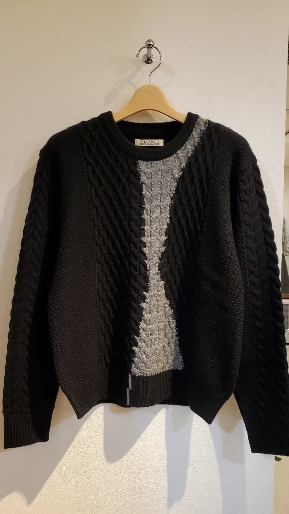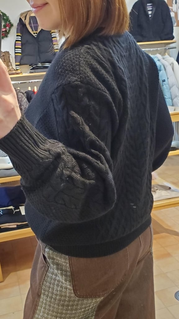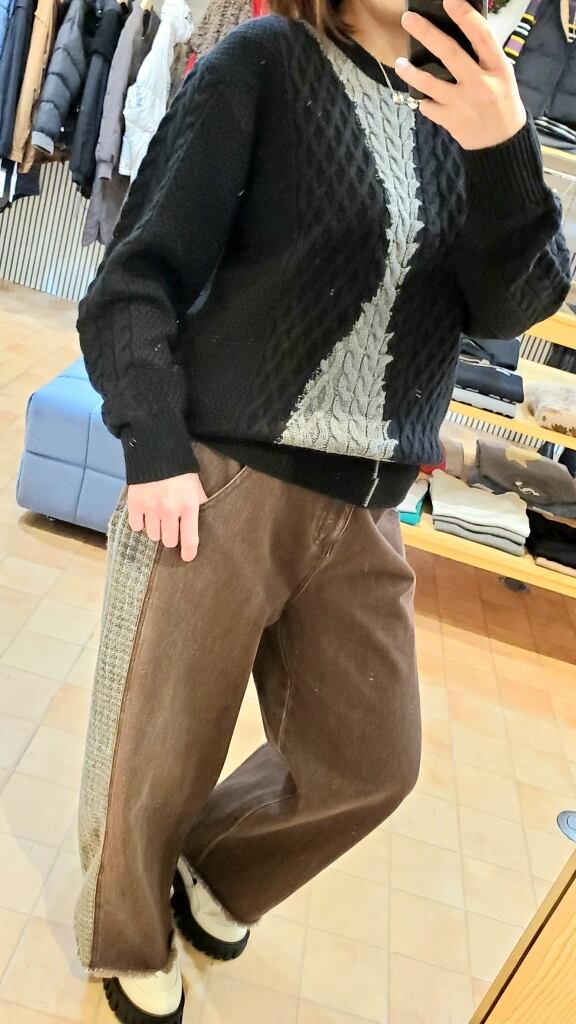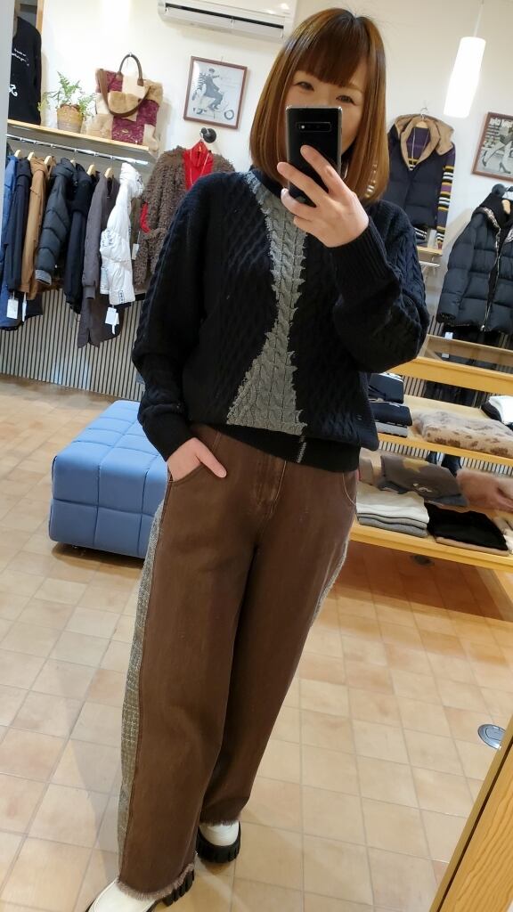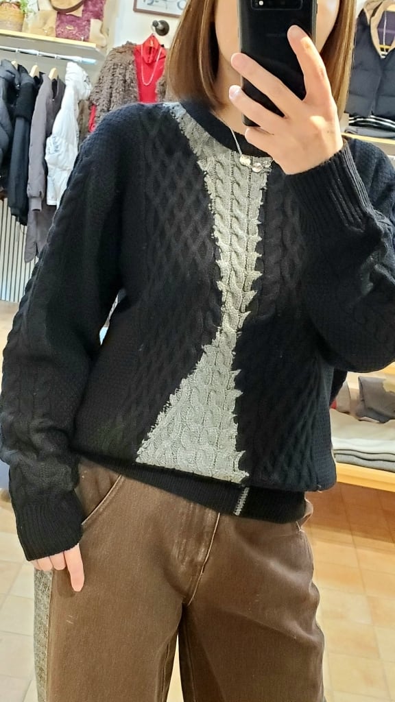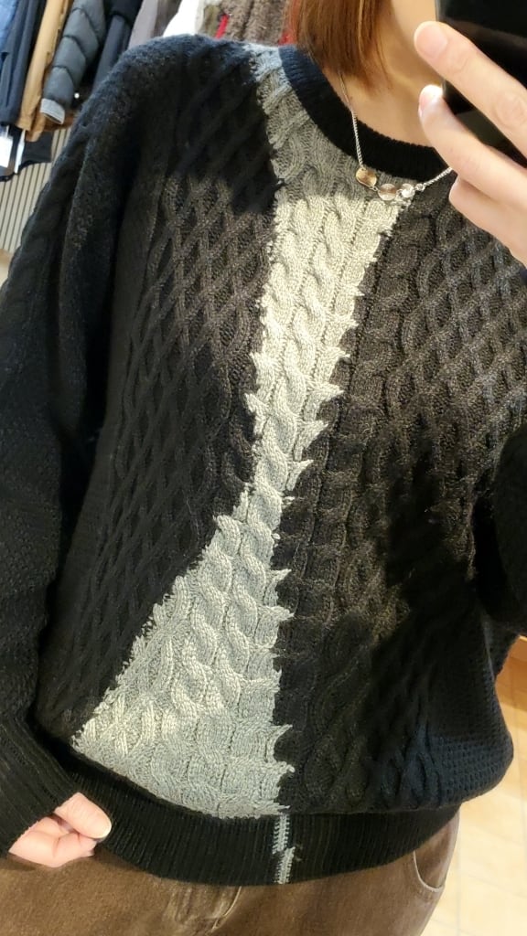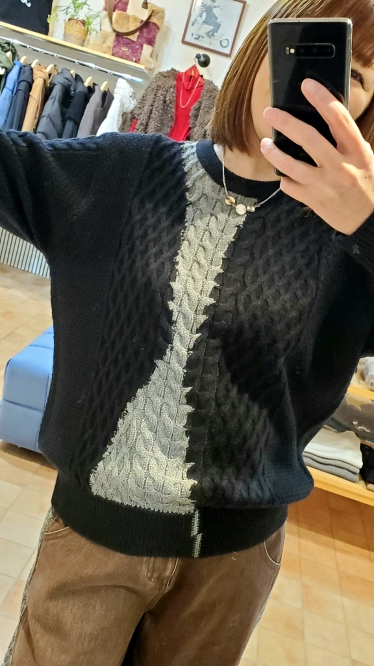 配色のインターシャ編みがお洒落なケーブル編みのニットです☆