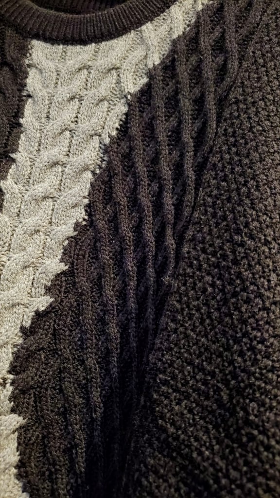 3種類の編地が表情を変え、シンプルながら見映え感たっぷりなニットに仕上がりました。