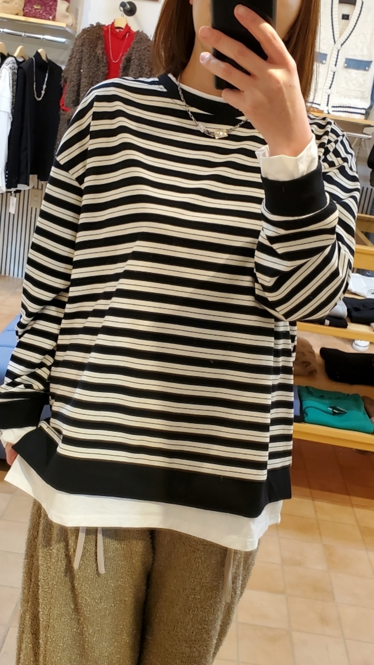 ゆったりリラックスな着心地にしっかりとした生地感がGOOD☆大人のボーダー好きさんコーデにもぴったりな、子供っぽくならずに取り入れて頂けるボーダー柄のカットソーに仕上がっています◎