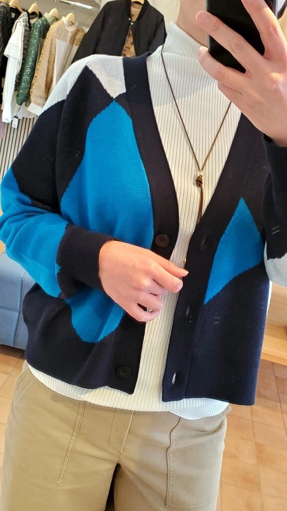 大胆なBIGアーガイル柄を効かせた主役カーディガンが入荷デス!