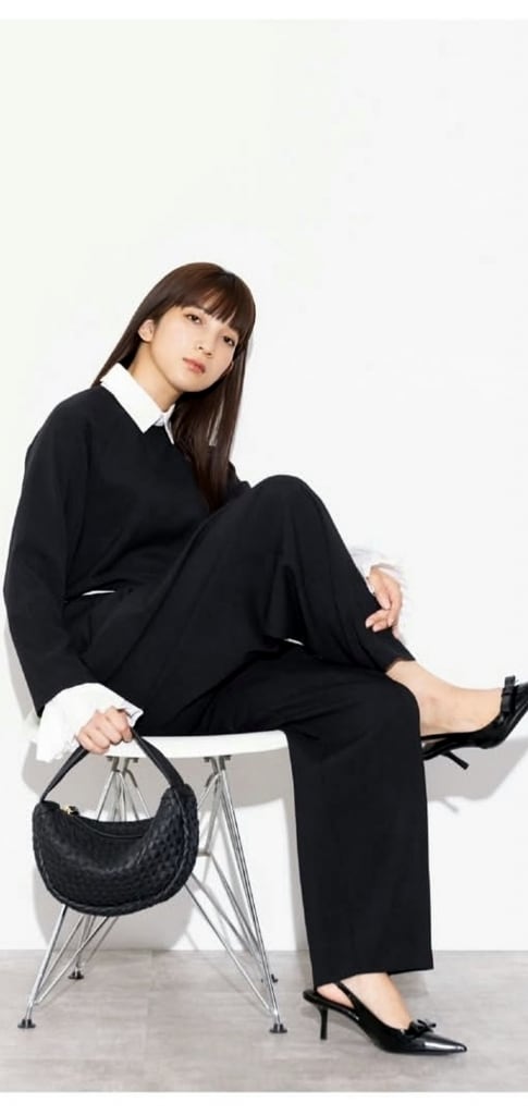 同素材の衿&カフス付きのブラウスと合わせた、周りと差の付くセットアップスタイルも大変おススメです!