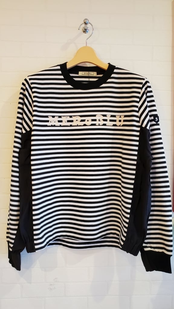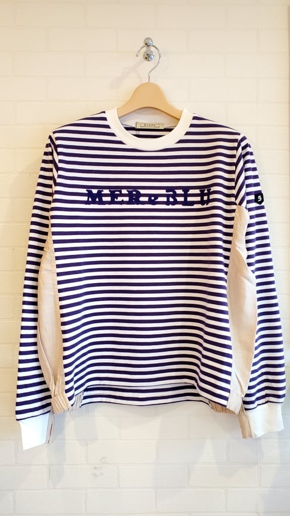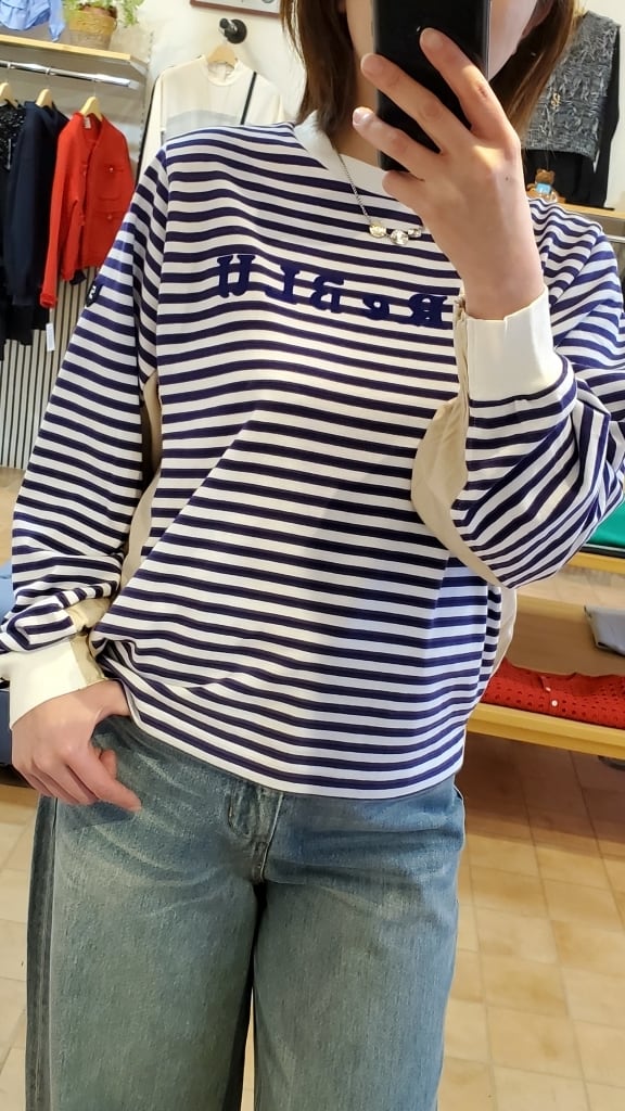 <BLANC basque> ボーダー×布帛ロゴTシャツ