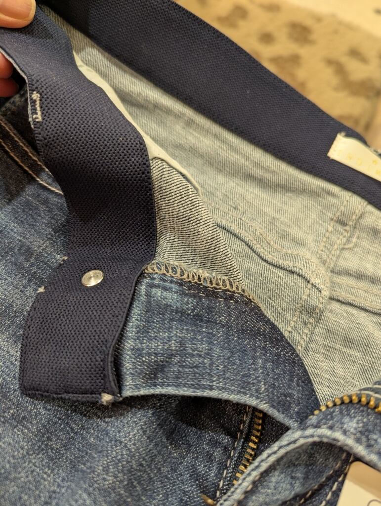 ウエストは内側総ゴム仕様でと~っても楽々仕様。デニム生地には程よいハリとストレッチ性がありますので、すっきりとしたラインをキープしながらもイージーな穿き心地になっています。