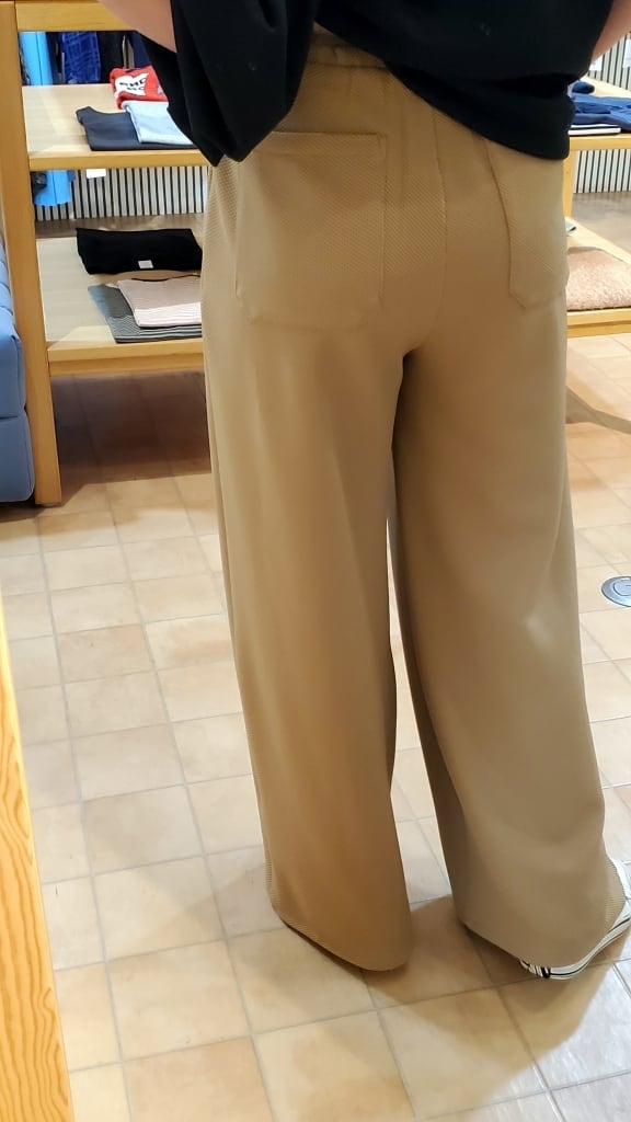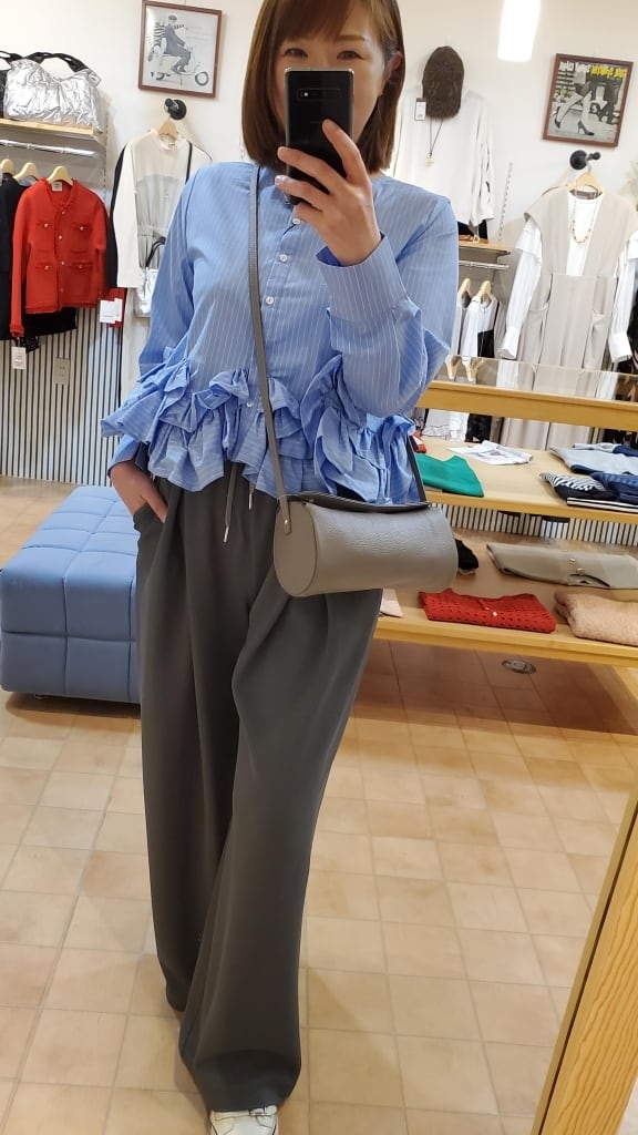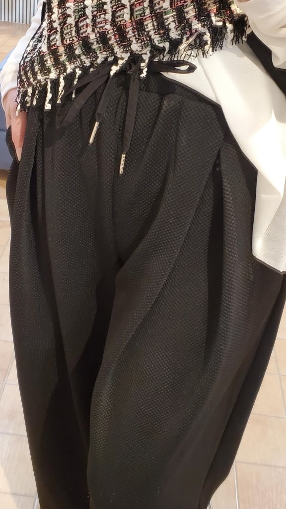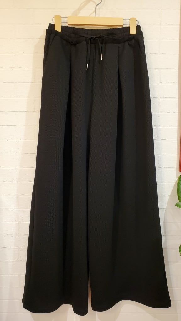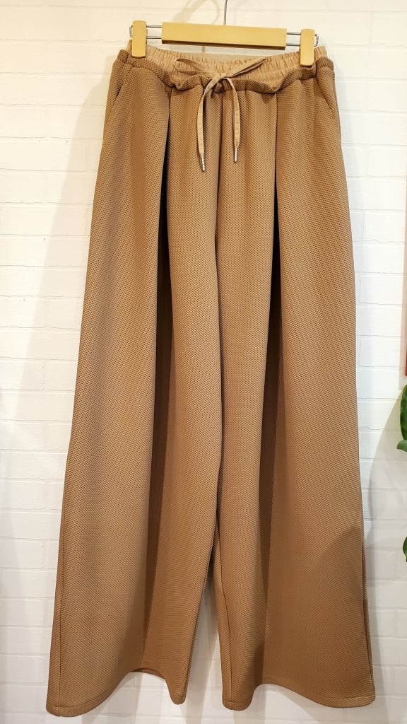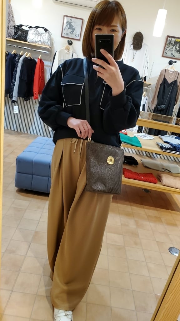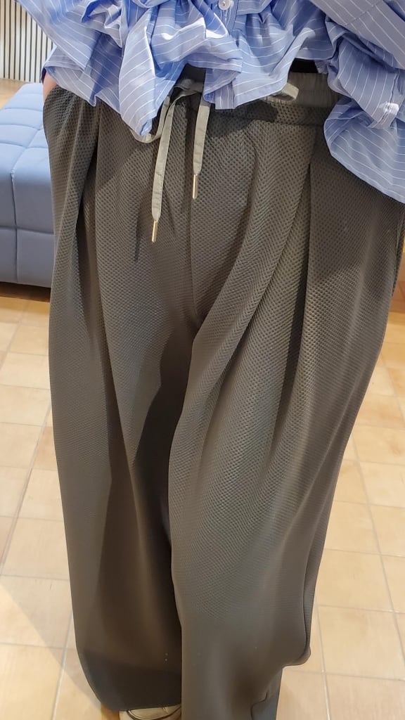 凹凸の表面で、いつもの無地パンツコーディネートに表情を付けて楽しめるこの春イチオシのワイドパンツです!