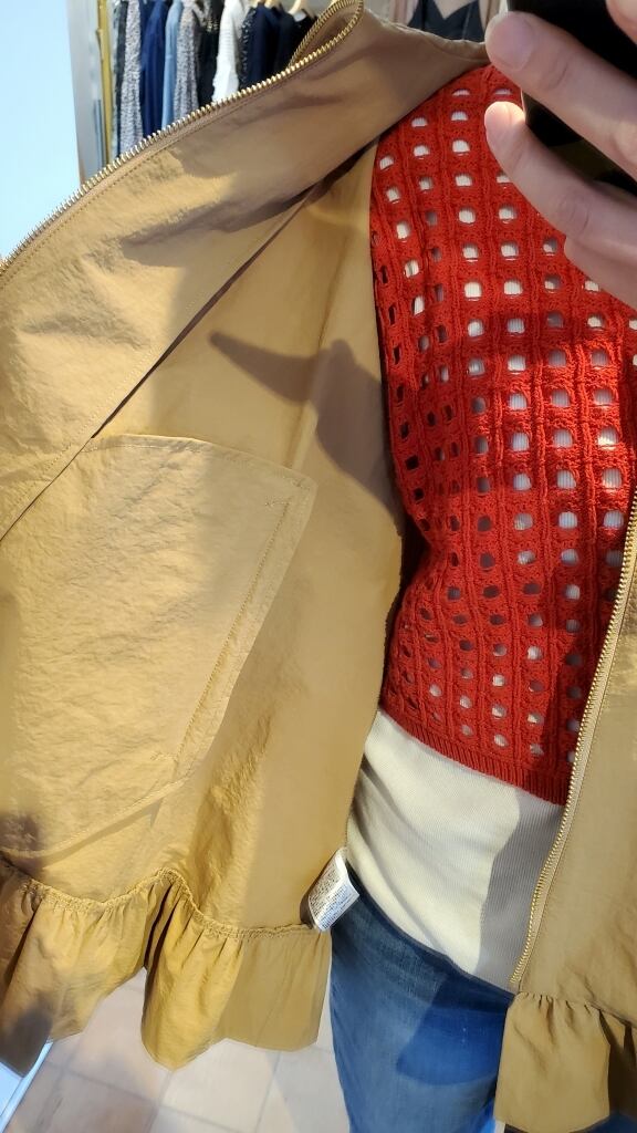 かりっと張りのあるナイロンタフタ素材で、裏地なしですが風を通さず安心。ゆったりとしたフレアのシルエットで女性らしさをUPさせながら、着やすさの面も兼ね備えた素敵なブルゾンです♪