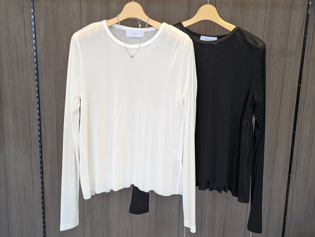 程よいチュールの透け感がどんなレイヤードコーディにも合わせやすい<シアン>人気のバックギャザートップスです。