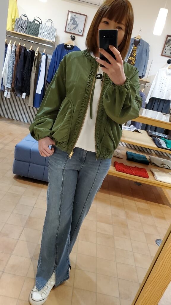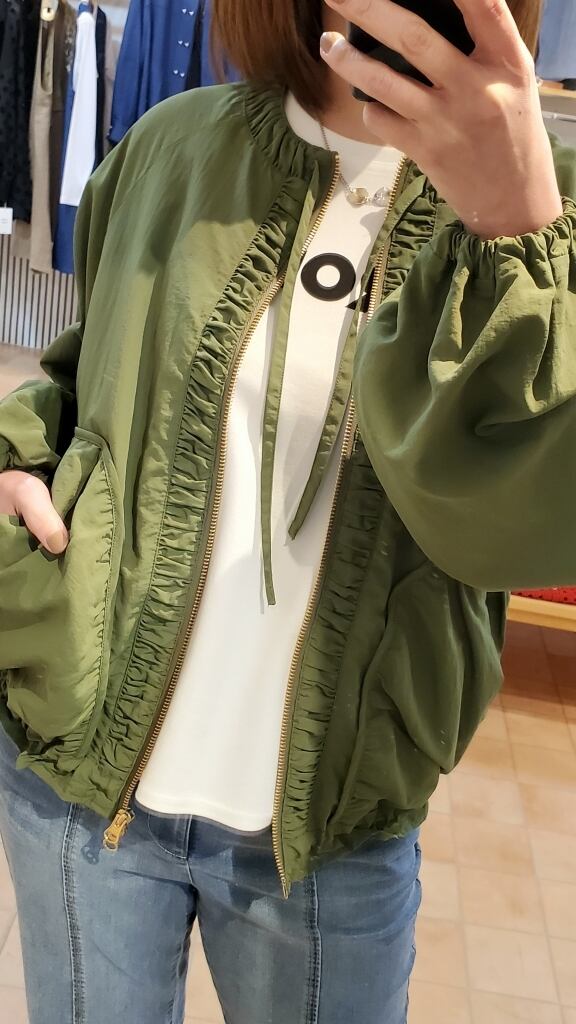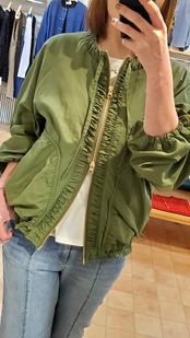 前を開けてパサっと羽織るもよし、閉めてお洒落ギャザーデザインを活かすもよし。合わせやすいシルエットながらシンプルにならず、魅せアウターとして楽しんで頂ける主役ブルゾンです!