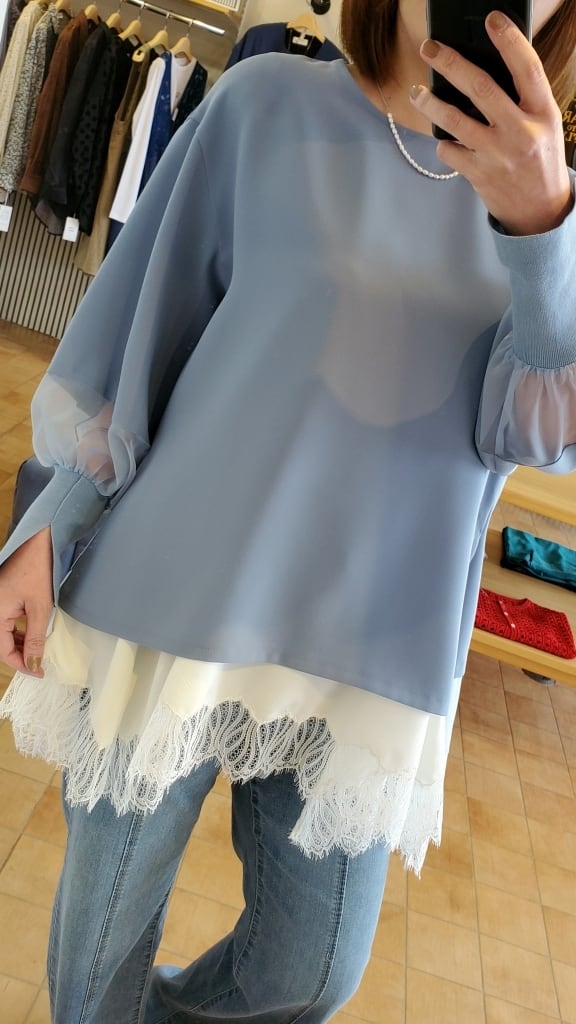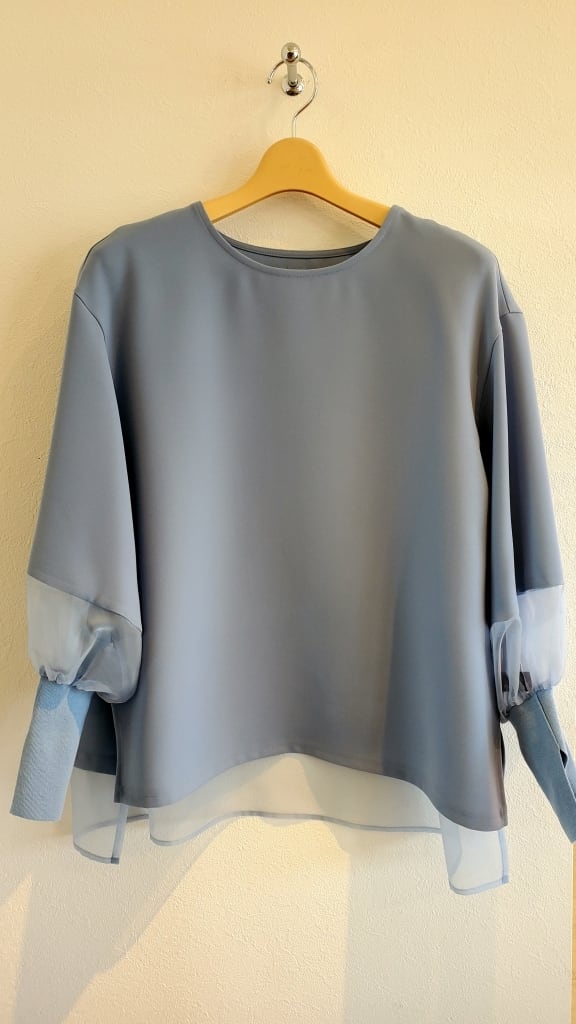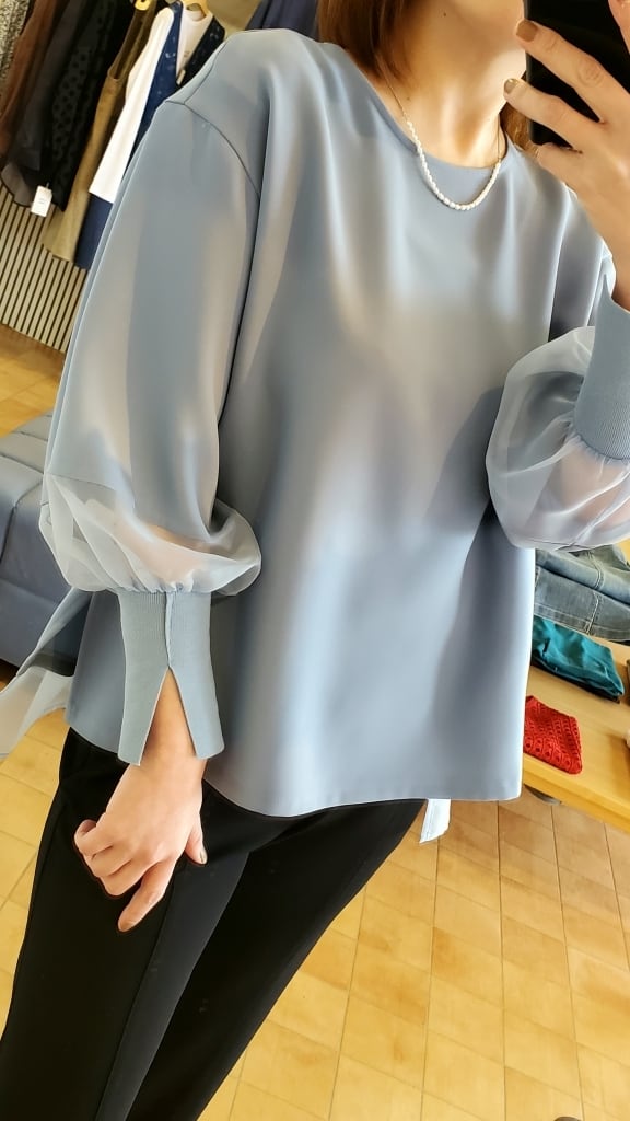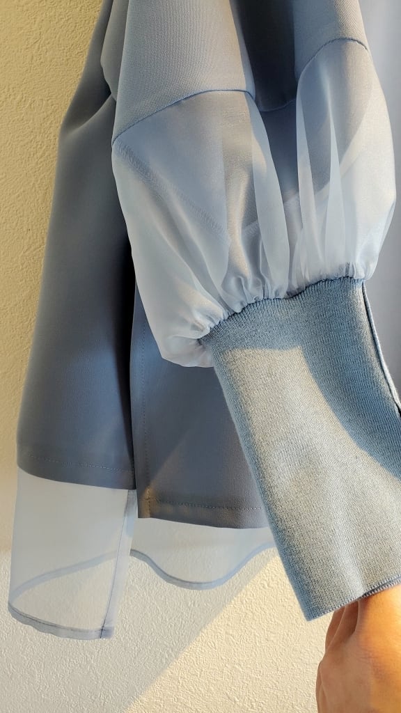 <BLUE FRONCE> シアー切り替えお袖スリットブラウス