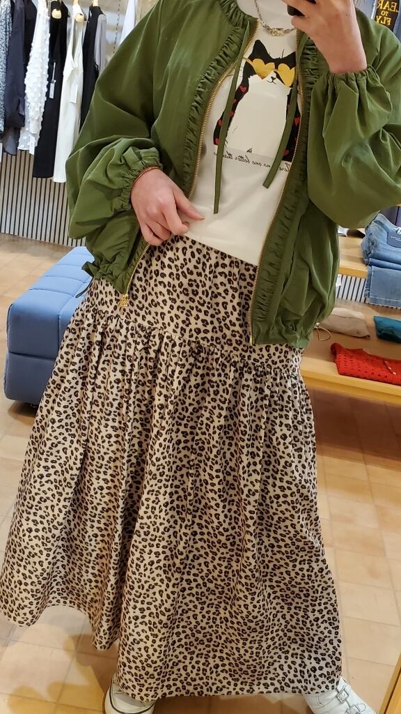 いつものボトムをレオパードスカートに変えるだけでオシャレ度も気分もアップしてくれること間違いなしです♪