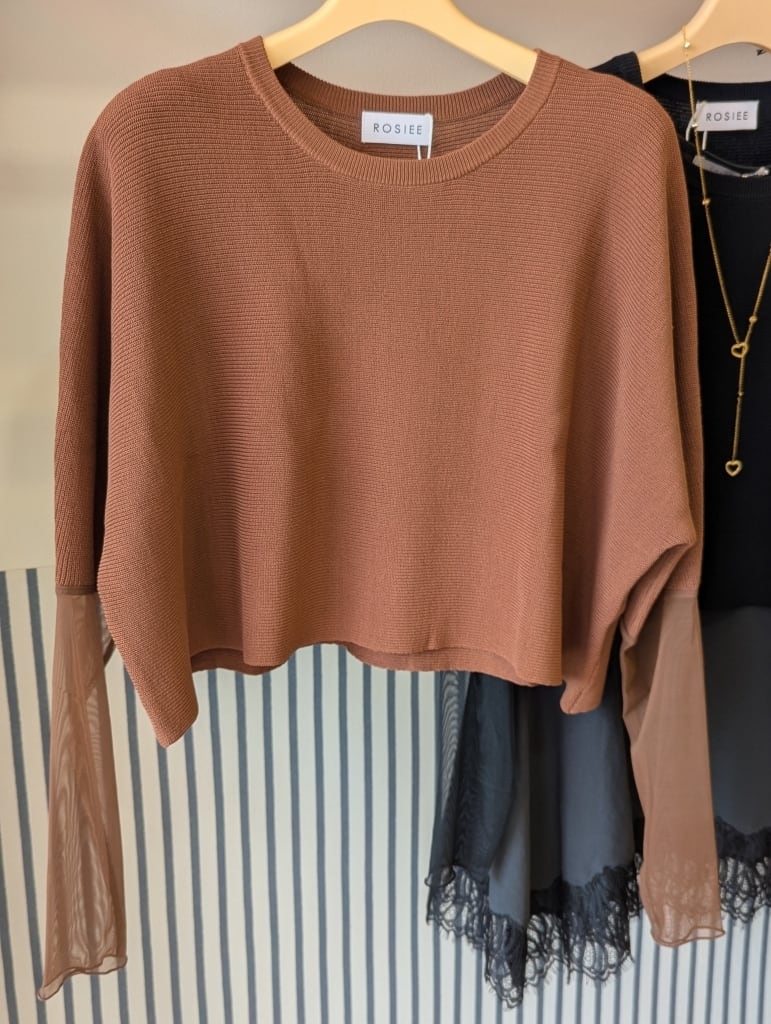 ◆<ロージー>袖チュール切り替えニット ブラウン