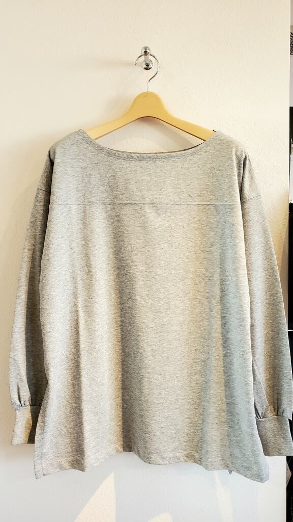 程よく横に開くボートネックで、お首、肩回りをすっきりと映してくれる効果があり。お袖はほんのりふっくらとさせ、女性らしい雰囲気も醸し出してくれます。